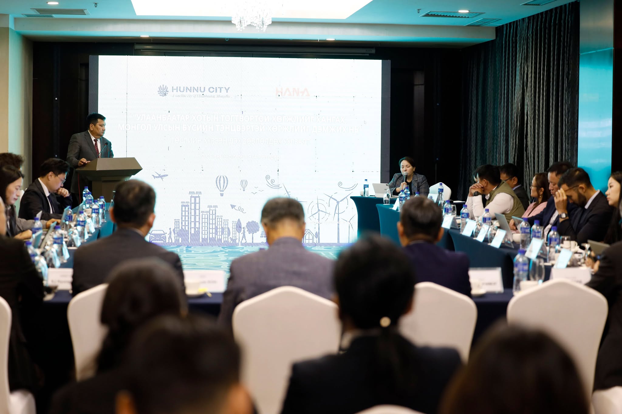 Хан-А хотын судалгааны хүрээлэнгийн захирал Тэ Кёнжин “Хүннү хот болон Хархорум хотыг хөгжүүлэх төслийн хүрээнд төлөвлөгөө боловсруулах болон зөвлөх үйлчилгээ үзүүлэхээр бэлтгэлээ ханган ажиллаж байна. Шинэ хотуудыг байгуулах ажил Монгол Улсын ирээдүйд маш чухал ач холбогдолтой. Үүнд оролцож байгаадаа баяртай байна. Мөн өөрсдийн хуримтлуулсан мэдлэг туршлагаа хуваалцахдаа таатай байна. Улаанбаатар хотын төвлөрөл олон асуудлыг дагуулж байдаг. Үүнийг шийдвэрлэх нь нэн тэргүүний ажил юм. Улаанбаатар хотод тулгамдаад буй жижиг нутаг дэвсгэрт олон хүн суурьшихад гарч байгаа асуудал Солонгос улсад ч бас тохиолдож байлаа. Үүнийг хэрхэн шийдэж ирсэн бэ гэдгээ энд танилцууллаа. Эхний ээлжид тохиромжтой газрыг сонгоод тархаан байршуулах буюу төвлөрлийг бууруулах төслүүдийг хэрэгжүүлэх хэрэгтэй. Дараа нь тэдгээр бүс нутгуудыг холбосон дэд бүтцийг барьж байгуулах ёстой. Өөрийн гэсэн онцлог бүхий суурьшлын бүсийг бий болгоно гэдэг нь тэнд хүнд хэрэгтэй бүхий л зүйл байх хэрэгтэй гэсэн үг. Түүнчлэн эдгээр бүсүүд өөр өөрийн гэсэн онцлогтой хөгжих хэрэгтэй” гэв.