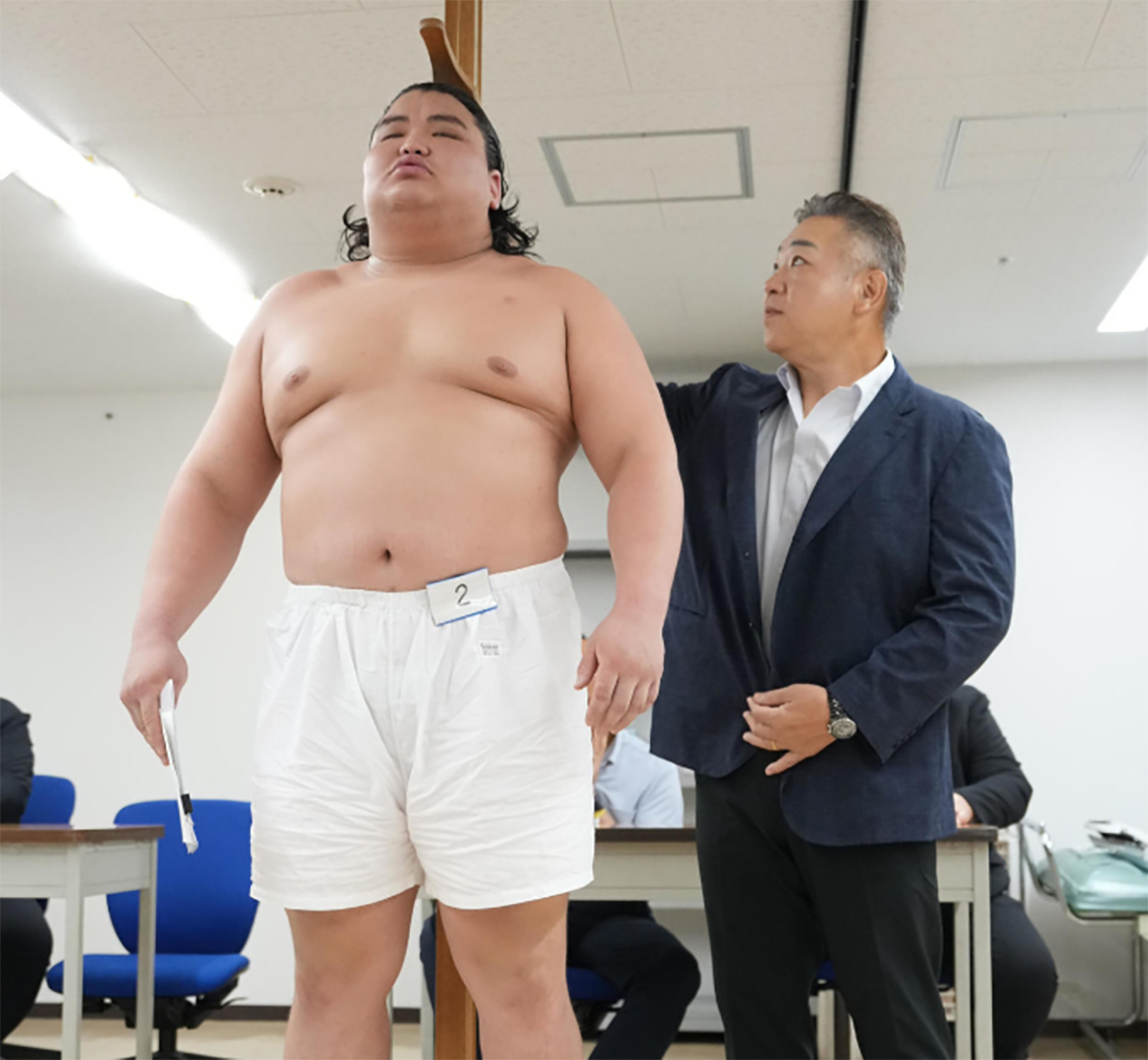 Шалгалт дээр хүчний үзүүлэлтийг нь хэмжихэд 240 кг өргөж үзүүлсэн гэнэ. Энэ нь их бяртай, түүнийгээ дагаад их ирээдүйтэйг нотолсон явдал гэж үзсэн байна. Мөн дотоод эрхтнүүдийн нарийн шинжилгээ хийлгэсний дараагаар Аки башёгийн эхний өдөр шалгалтын дүнг танилцуулах ажээ.