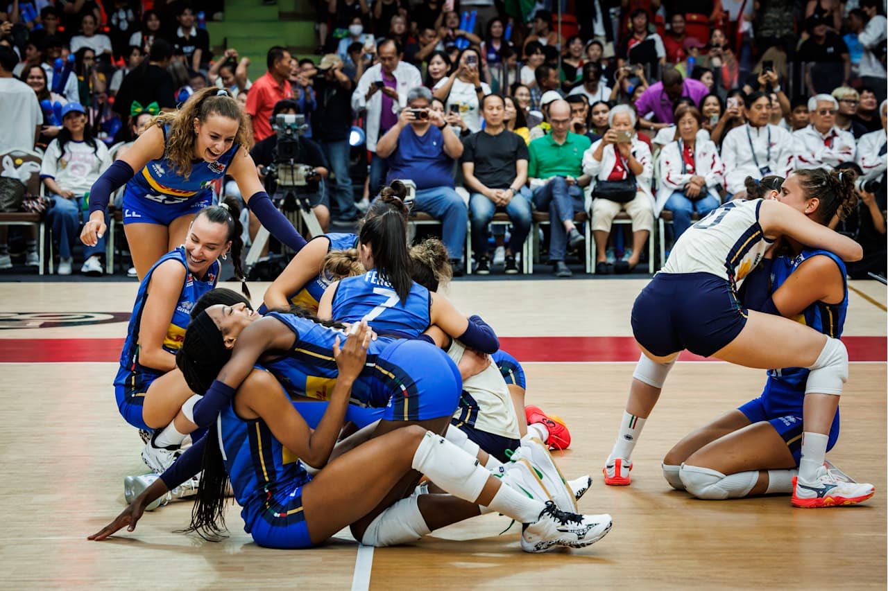Парисын олимпын аварга Италийн эмэгтэйчүүдийн шигшээ энэ финалд 25:23, 13:25, 26:24, 19:25, 15:8-аар буюу таван үеийн ширүүн тулаанаар ялалт байгуулснаар 23 жилийн дараа Дэлхийн аваргын алдрыг дахин хүртлээ. Ингэснээр Кубын шигшээ Олимп, Дэлхийн аваргыг цомыг хамтад нь өргөсөн гайхалтай түүхийг давтаж байна.