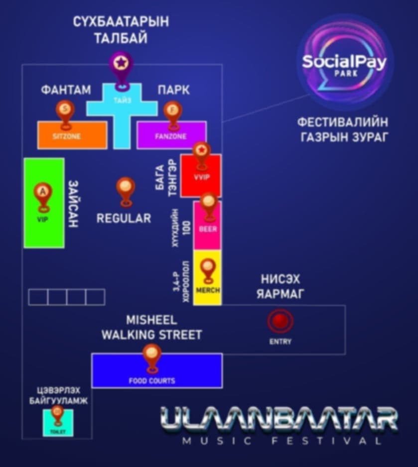 Фестивалын зохион байгуулагчдын мэдээллэснээр тусгайлан тохижуулсан талбайн бүсүүдийг: