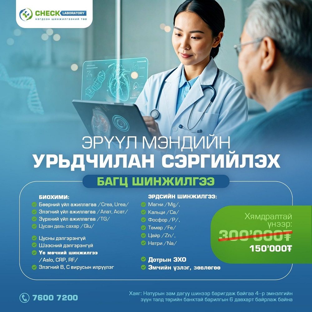 "БҮТЭН БИЕИЙН БАГЦ ШИНЖИЛГЭЭ" 9-р сарыг дуустал 300,000₮-150,000₮ боллоо.