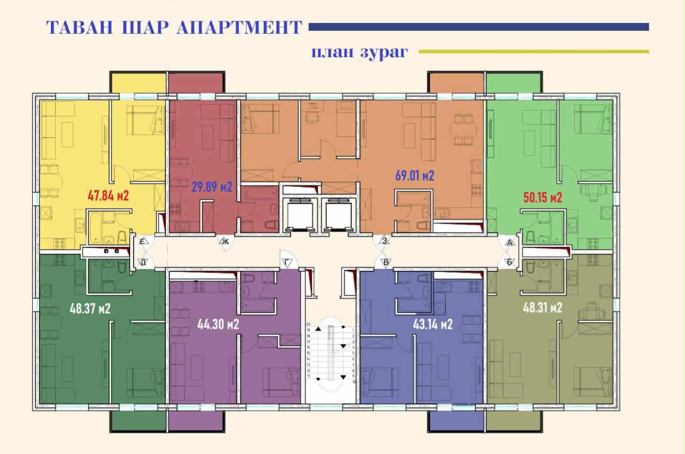 “Таван шар апартмент” төсөл нь хоёр блок, 16 давхар, 29-69 м.кв-тай 1, 2, 3 өрөөний сонголттой 240 айлын орон сууцны хотхон бөгөөд хотхоны голд автомашин нэвтрэхгүй аюулгүй тоглоомын талбайтай гэдгээрээ давуу талтай. Мөн бүрэн цутгамал, метал болон шилэн фасадтай, газар хөдлөлтийн найман баллд тэсвэртэй, гурван давхар вакум цонхтой, сэргээгдэх эрчим хүчний нэмэлттэй технолгитой учраас цахилгаан тасарсан үед ч хотхоны гэрэлтүүлэг, лифт ажиллах боломжтой зэрэг олон давуу талтай юм.