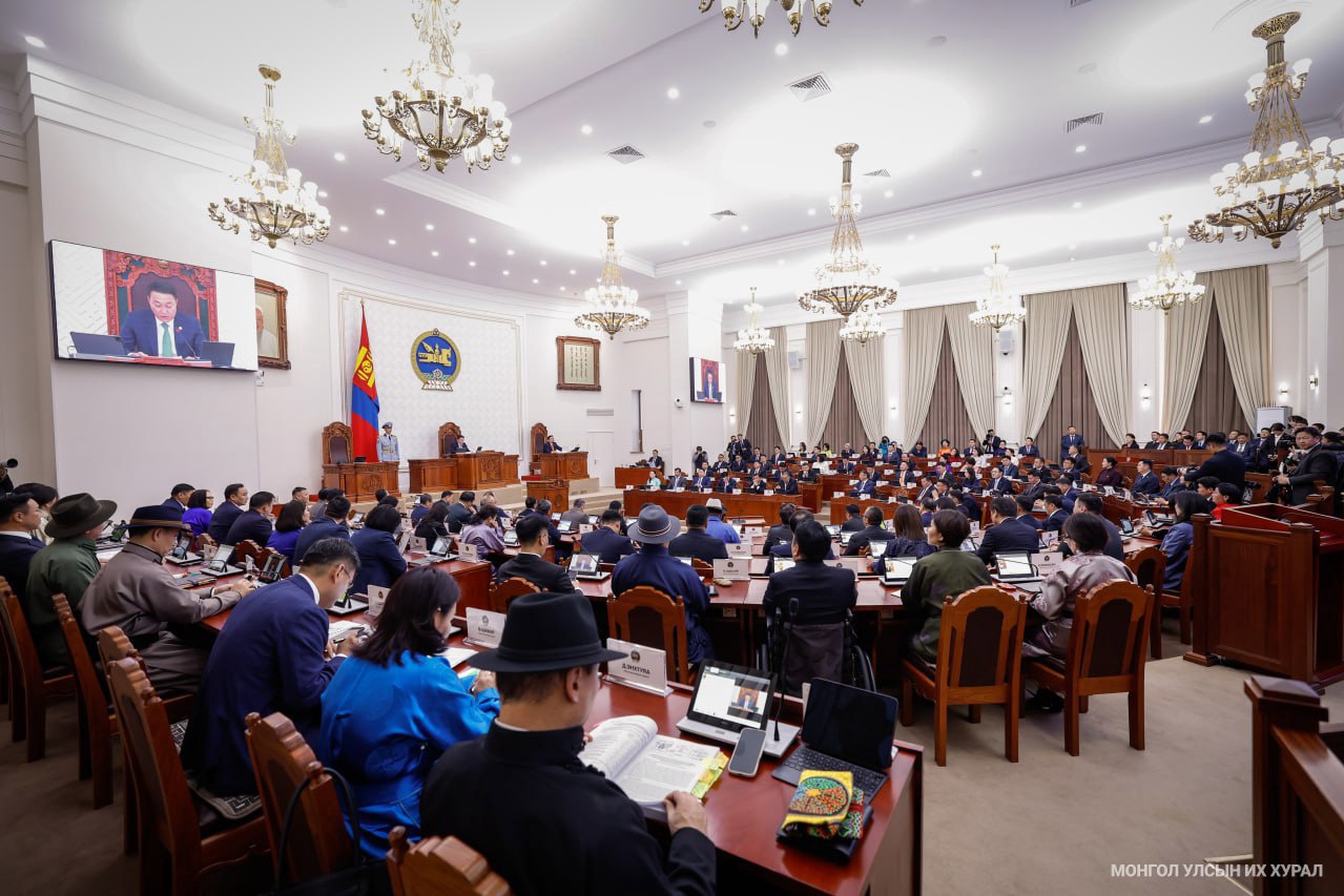 Намрын ээлжит чуулганы эхний өдрийн нэгдсэн хуралдаан үдээс хойно Монгол Улсын 2026 оны төсвийн хүрээний мэдэгдэл, 2027-2028 оны төсвийн төсөөллийн тухай хуульд өөрчлөлт оруулах тухай болон Монгол Улсын 2026 оны төсвийн тухай, Үндэсний баялгийн сангийн 2026 оны төсвийн тухай, Нийгмийн даатгалын сангийн 2026 оны төсвийн тухай, Эрүүл мэндийн даатгалын сангийн 2026 оны төсвийн тухай хуулийн төслүүдийн нэг дэх хэлэлцүүлгээр үргэлжилжлэх байсан бол АН-ын дарга УИХ-ын гишүүн О.Цогтгэрэл завсарлага авах хүсэлт гаргаснаар УИХ-ын чуулган лхагва гарагт үргэлжлэхээр боллоо.