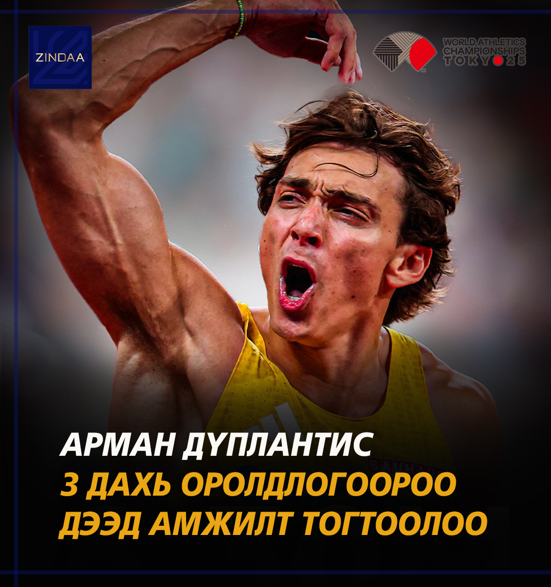 Шведийн 25 настай аугаа тамирчин Арман Дүплантис Токиод болж буй Хөнгөн атлетикийн Дэлхийн Аварга Шалгаруулах Тэмцээнд үзэгчдийн хүсэн хүлээснийг өгч чадлаа.
