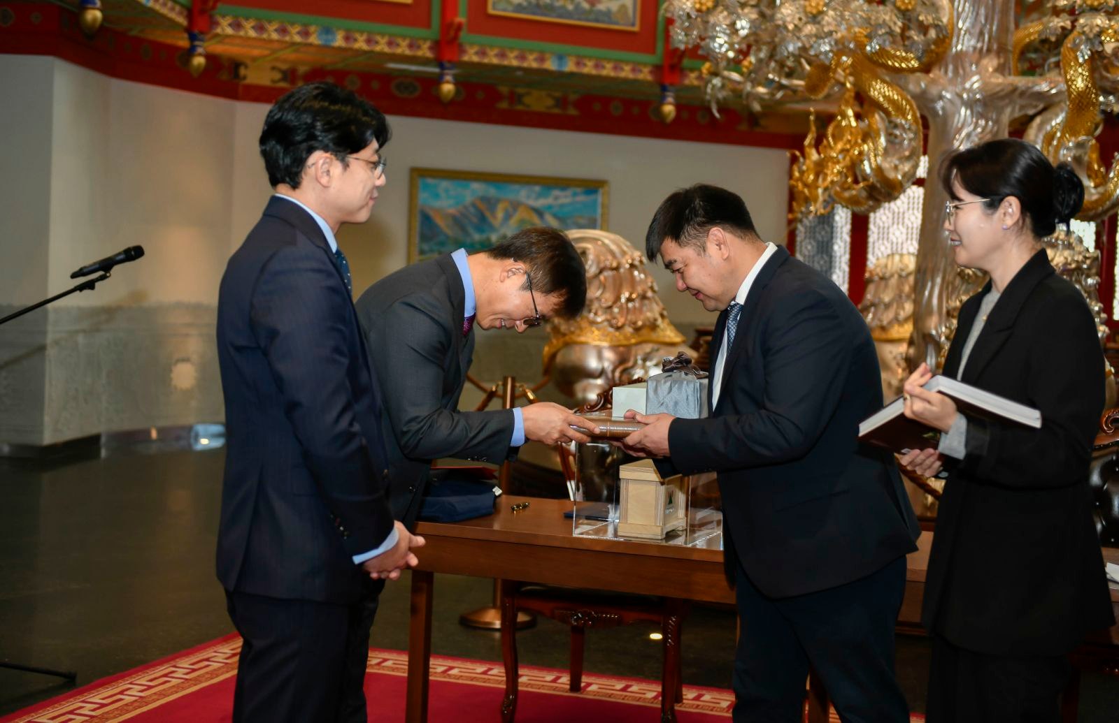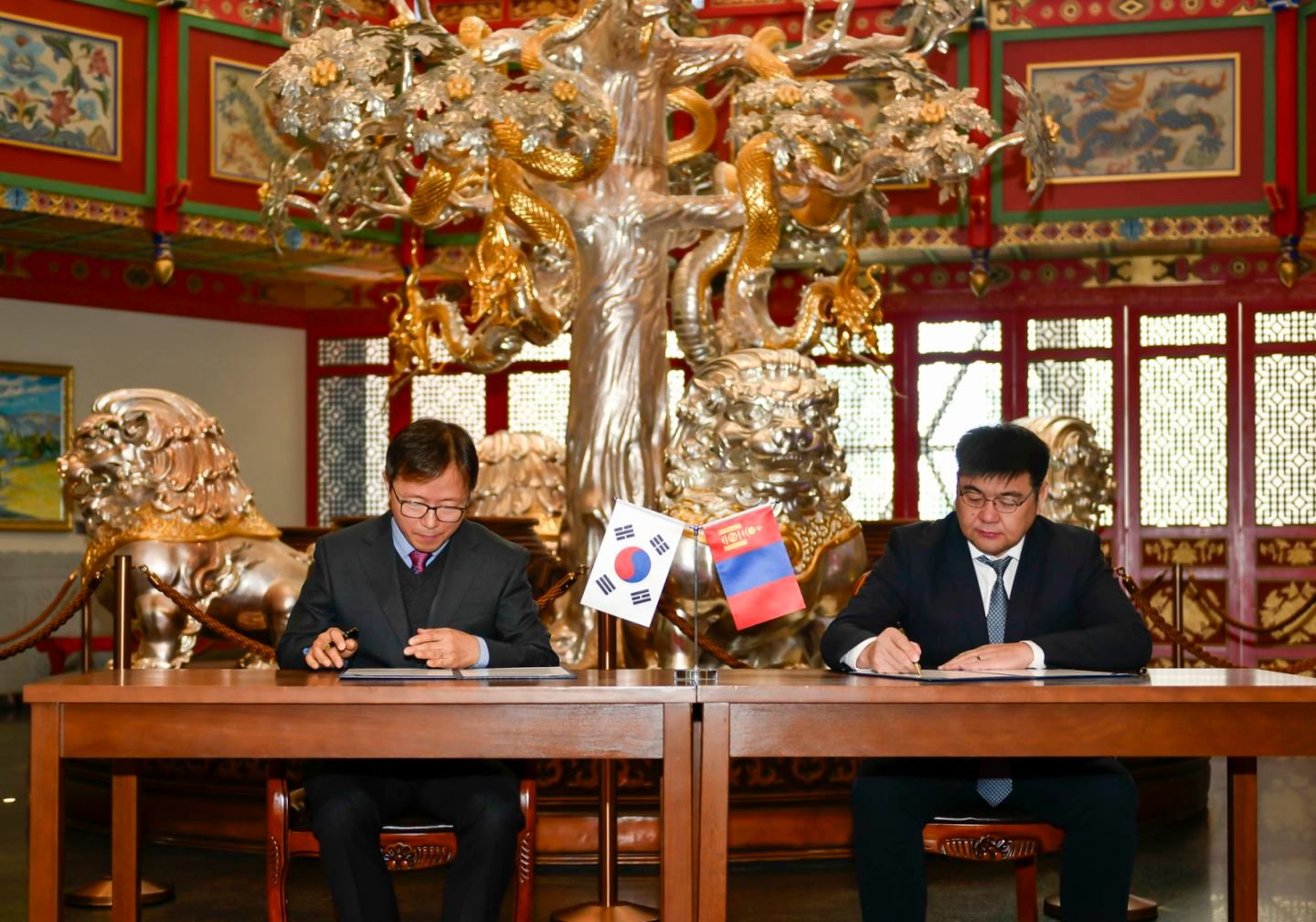 Чингис хаан Үндэсний музейн захирал, Академич С.Чулуун, БНСУ-ын “Донгбу Арт” ХХК-ийн Төлөөлөн Удирдах зөвлөлийн дарга Жон Жунгжин нар харилцан ойлголцлын “Санамж бичиг”-ийг өнөөдөр (2025.09.17) байгууллаа.