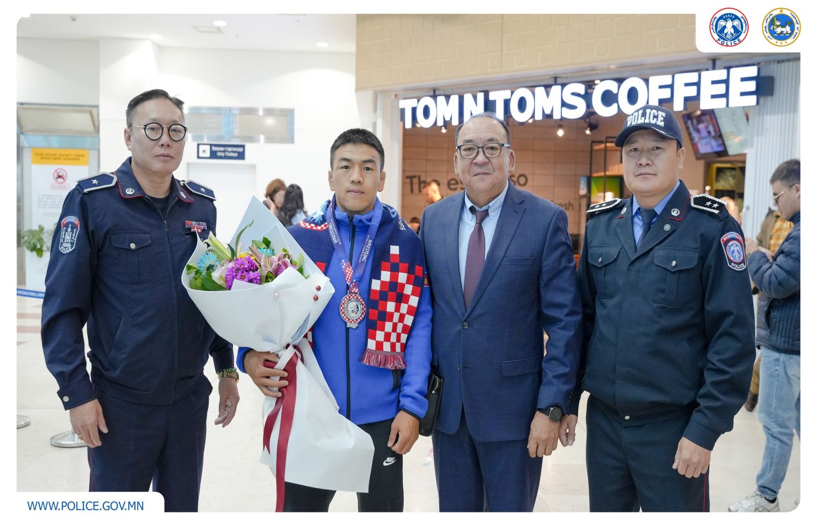 Хорватын нийслэл Загреб хотноо болж буй Чөлөөт бөхийн насанд хүрэгчдийн дэлхийн аварга шалгаруулах тэмцээний эрэгтэйчүүдийн 70 кг-ын жинд зодоглосон “Осло-2021” ДАШТ-ий хүрэл медальт, “Ханжоу-2022” Азийн наадмын аварга, Ази тивийн хошой мөнгөн медальт Цагдаагийн ерөнхий газрын Цагдаа, дотоодын цэргийн сургалтын нэгдсэн төвийн Хүч албаны бэлтгэлжилтийн хэлтсийн дасгалжуулагч, цагдаагийн дэслэгч Т.Тулга мөнгөн медалийн болзол ханган, өнөөдөр (2025.09.18) эх орондоо ирлээ.