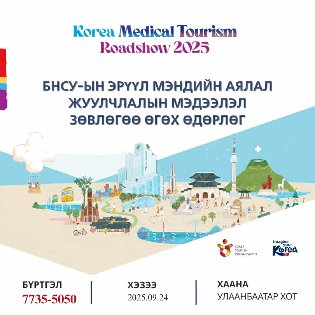 БНСУ-ын Соёл Спорт Аялал жуулчлалын яамны харьяа Аялал жуулчлалын төрийн өмчит корпорацын КТО Улаанбаатар төлөөлөгчийн газраас 9-р сарын 24-ний өдөр “K-Medical Tourism Roadshow” БНСУ-ын Эрүүл мэндийн аялал жуулчлалын өдөрлөгийг зохион байгуулах гэж байна.