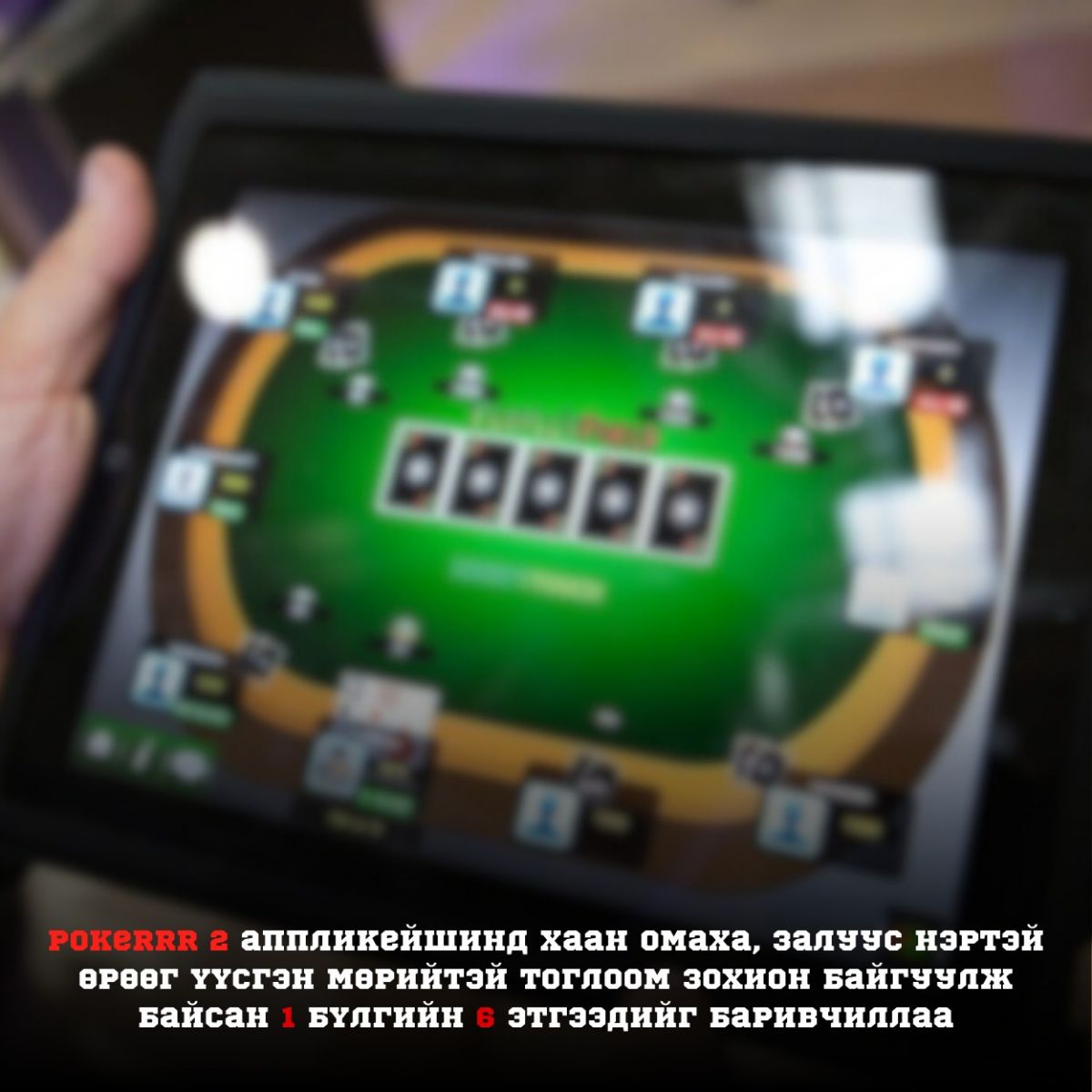 Цахим орчинд pokerrr 2 аппликейшинд хаан омаха, залуус нэртэй өрөөг үүсгэн мөрийтэй тоглоом зохион байгуулж байсан 1 бүлгийн 6 этгээдийг баривчиллаа.