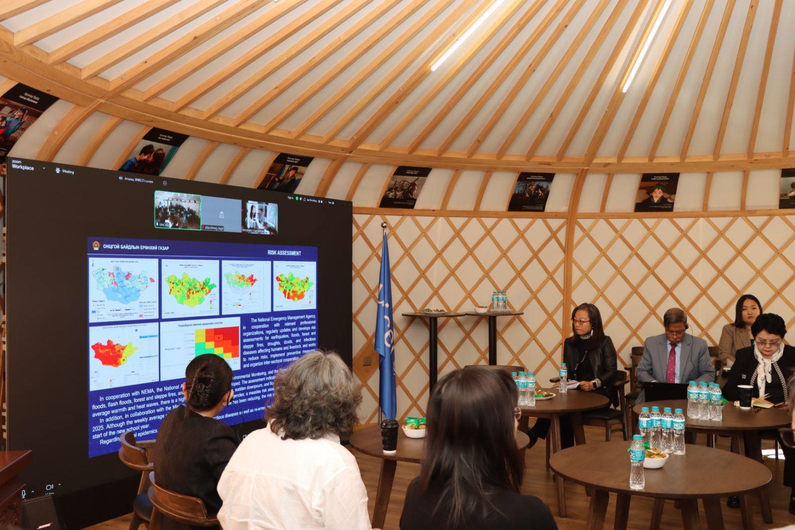 Уулзалтад НҮБ-ын төрөлжсөн байгууллагууд болон хүмүүнлэгийн багийн гишүүд оролцож, ой, хээрийн түймрийн нөхцөл байдал, хариу арга хэмжээ, өвлийн цаг агаарын урьдчилсан төлөв, өвөлжилтийн бэлтгэл болон цаг үеийн бусад мэдээлэлтэй танилцсан юм.