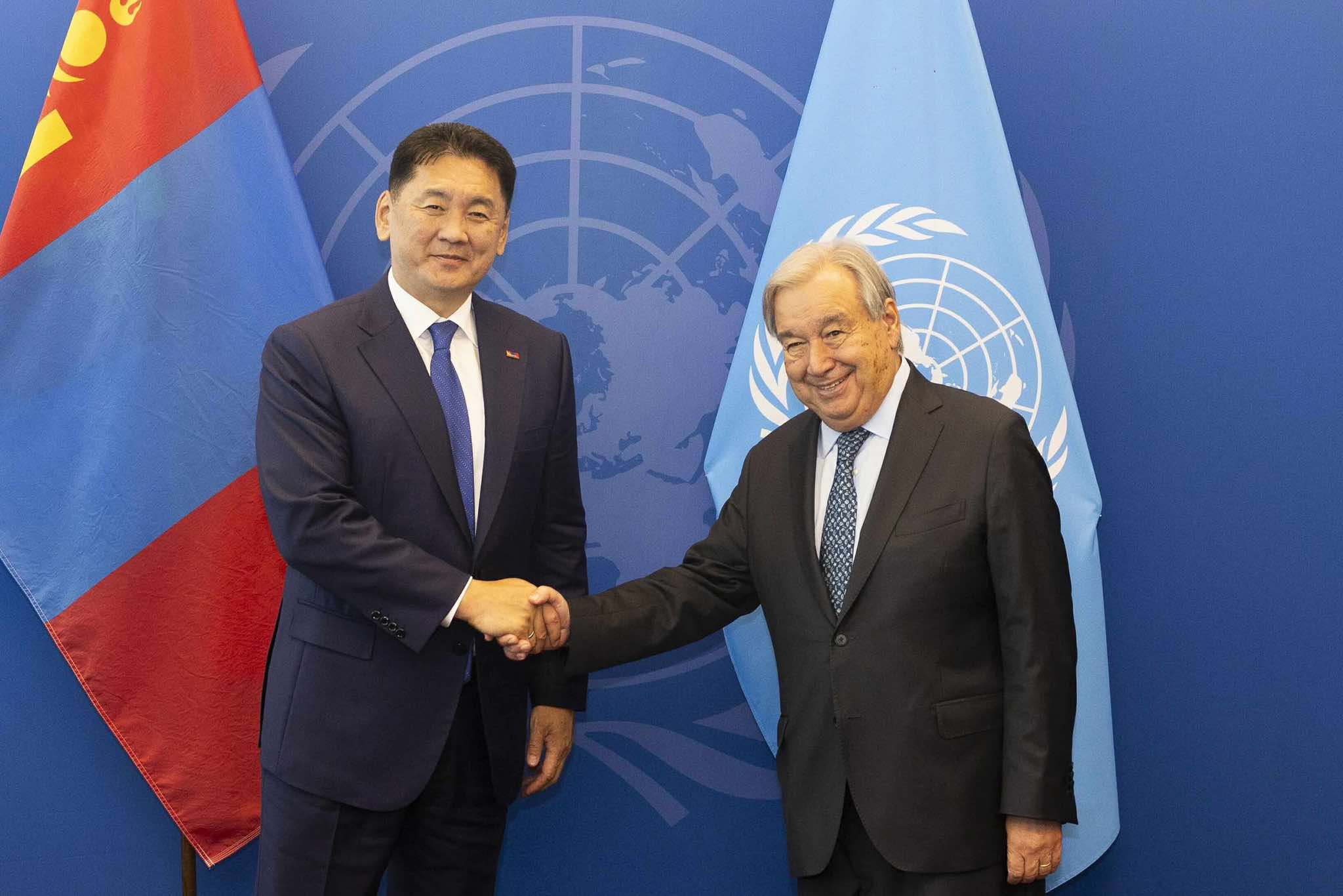 Монгол Улсын Ерөнхийлөгч У.Хүрэлсүх 2025 оны есдүгээр сарын 23-ны өдөр НҮБ-ын Ерөнхий нарийн бичгийн дарга Антонио Гутеррештэй НҮБ-ын Төв байранд уулзав.