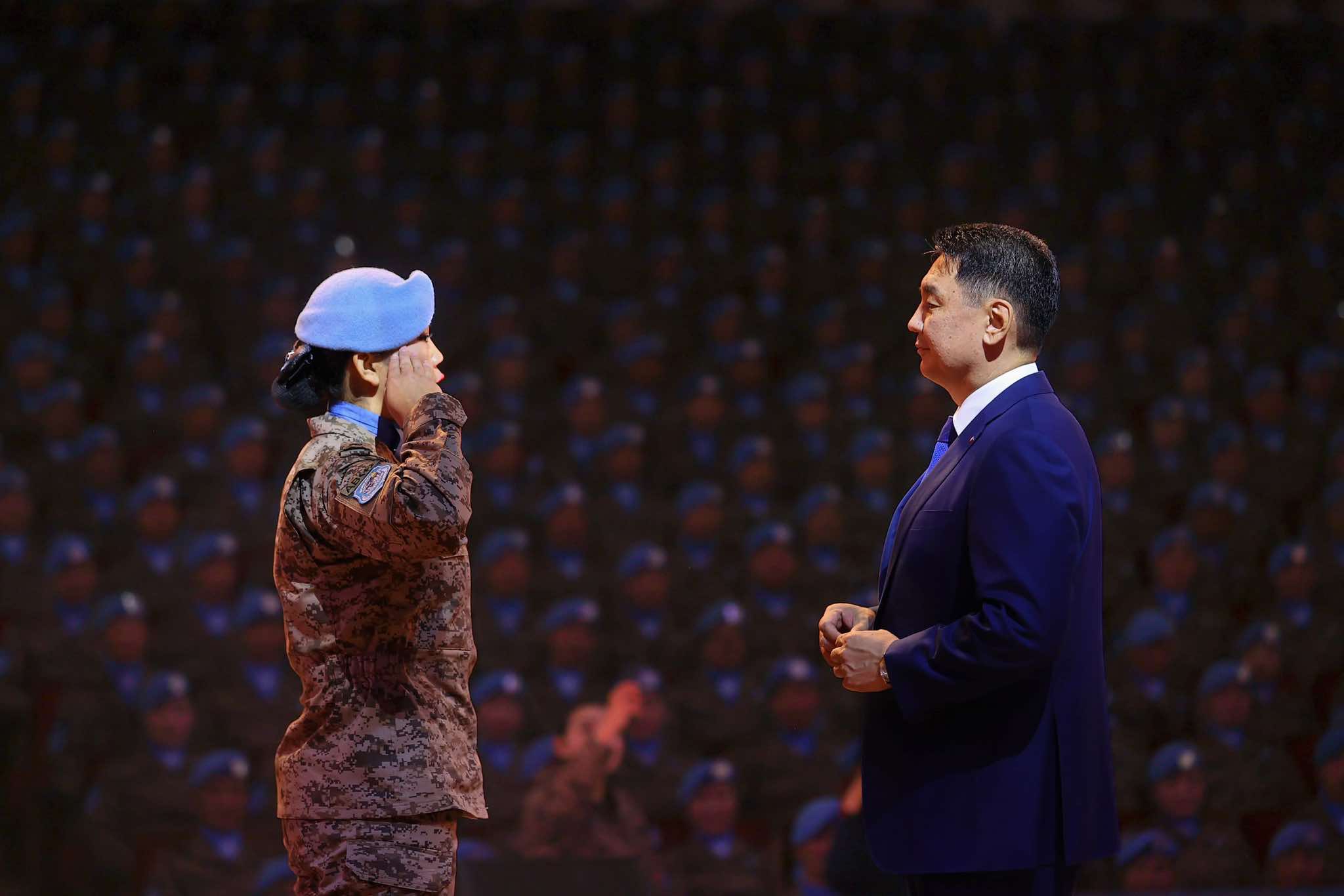 Одоогоор манай 896 цэнхэр дуулгатан энхийг сахиулж байгаагийн 14.2 хувь нь эмэгтэй бөгөөд энэ үзүүлэлтээрээ НҮБ-д цэрэг хандивлагч 121 орноос 19 дүгээрт эрэмбэлэгдэж байна.
