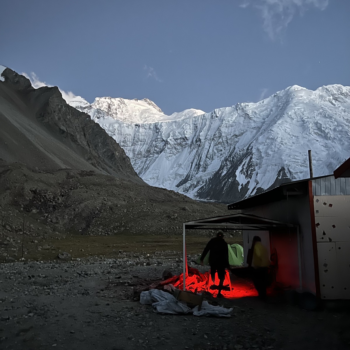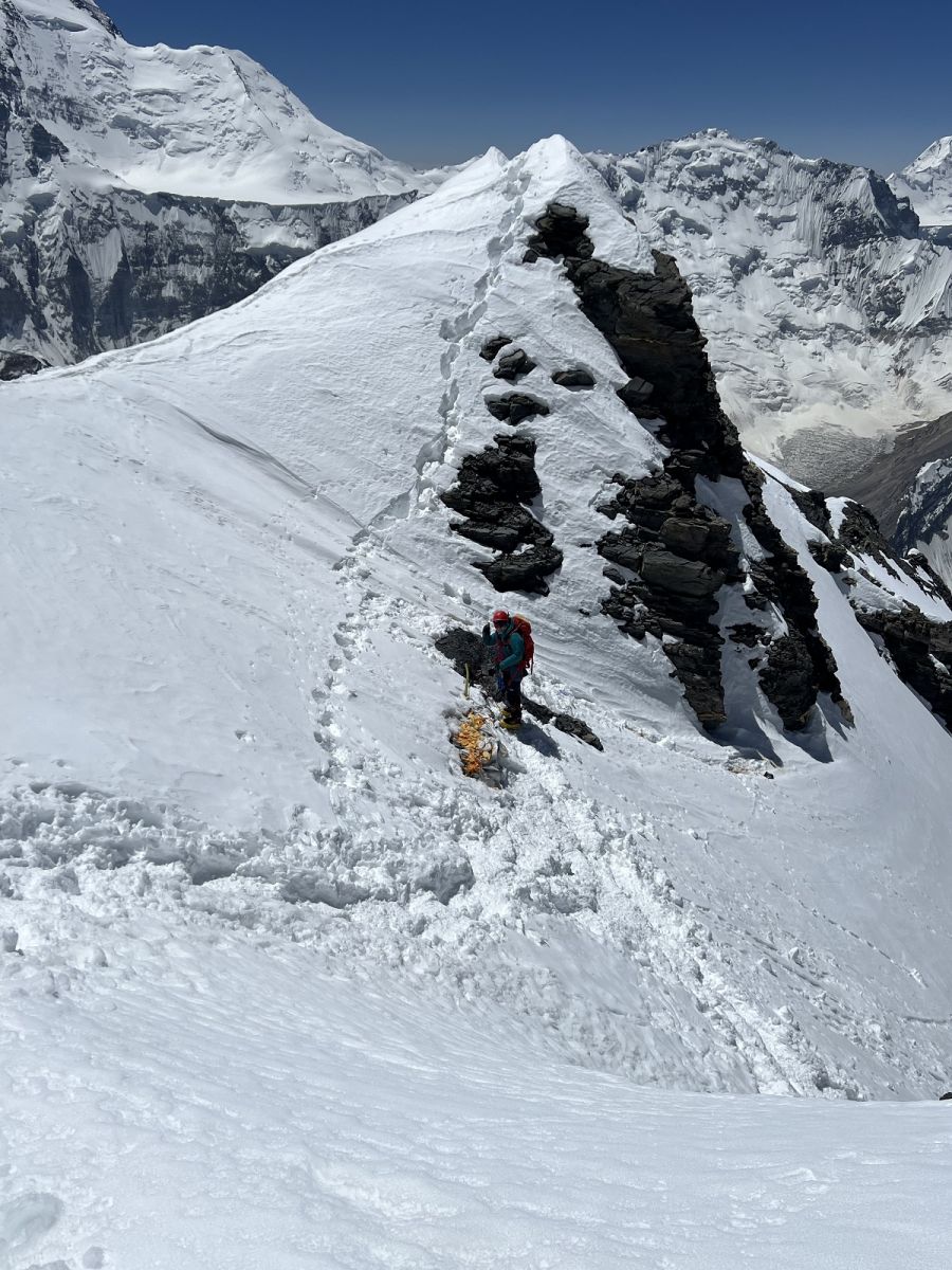 2024 оны 7 дугаар сарын 27-ноос 31-ний хооронд Дтд 5100 м. Эхний отог хүрэх цавчим хадан цохиог давахад угтах мөсөн голоос хэлтрэн унаж ойх хад чулуун дундуур таарах гарам. Уулчидын яриагаар маш аюултай зурвас. Биднийг гарахад мөс, чулуу холилдсон нуранги үүнийг баталж заналхийлэн урсан одлоо. Нэгдүгээр отгоос гараад 40 орчим метр өндөр хадан цохио өөд өглөөгүүр авирахад мөс хайлж эхлээгүй цаг хэдий ч хамгаалалтын олсоор мацахад бээлийнүүдээ нэвт норгон байж давлаа. Дтд 5600м өндөрт байрлах 2-р отогийн наана ангалд уналаа би!. Хөлийн гишгэгдэл дор газар гэнэт цөмрөх шиг л болсон... Эхний хэдэн хоромд яаж тогтож үлдэх вэ? л гэж бодогдсон.Хоёр хөл, нуруугаараа тэгнэж арайхийн үлдэв.Одоо маш тайван байж ангалаас хэрхэн гарах дараагийн алхамыг зөв бодож олох ёстой... Хамт яваа хашир туршлагатай альпинистын тусламжтайгаар аюулт ангалаас амь хэлтэрсэн. Тэнд манай баг цусан дахь хүчил төрөгч тээвэрлэгч гемоглобины тоогоо нэмэгдүүлж өндөр авалтын бэлтгэлийг чамгүй сайн базаасан.