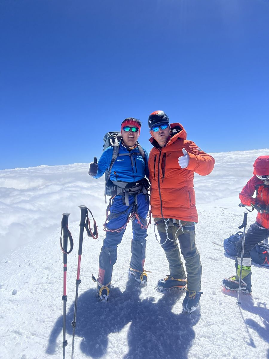 2024 оны 8 дугаар сарын 16. Өдөр бараг өнгөрч байхад “Москвина” үндсэн отгоос 3 км орчимд Бородкина уулын бэлээр хөхрөх “Вальтер”-ын мөсөн голоор харайлгаж, “Нисдэг тэрэгний” хэмээх түр зогсоол дээр харанхуйд ирэхэд зорилго нэгт альпинистууд тосон авч цангаа тайлсанд, Үндсэн отог хүртэл үүргэвч сэлтийг маань үүрч дүүрч өгсөнд хачин их баяртай. “Чапаев”-ын оргил дор, дтд 6900 м өндөрт байрлах дайралтын отгоос өглөөний 7 цагаас гарч доошилсон бид 2 ийнхүү шөнө дунд болохоос өмнөхөн “Москвина” үндсэн отогт эсэн мэнд хүрч ирлээ. Майхны үүдэнд хамт оргилдсон нутаг нэгт нөхөр чангаас чанга тэврэн авахад авиралт амжилттай болж гэдгийг ухамсарласан миний самсаа шархирсан.