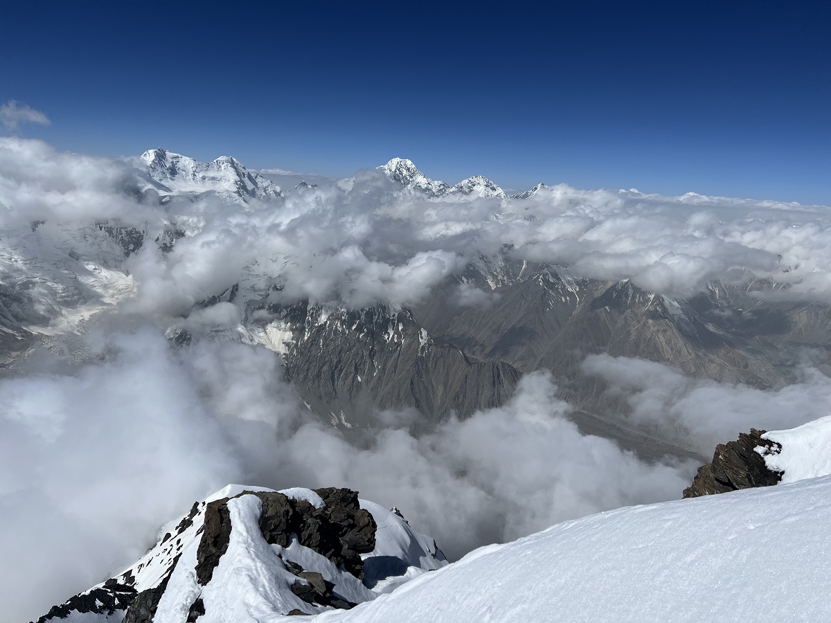 Өтгөрүүлсэн сүү, бэлэн гоймон, бутарч үйрсэн талх болон борцны заримыг энд үлдээв. 2025 оны 8 дугаар сарын 14. 18 цаг орчимд дтд 6900 метрт Душанбе оргилын хойт товцог дээрээс цас малгайлан орж бидний ирсэн замыг хэрхэн аажмаар баллуурдаж байгааг майхны үүдээр харан хэвтэнэ. Манай багийнхан өөр өөрийн майханд маргааш өглөөний оргил өөд зүтгэх авиралтаа тархиндаа нэрэн амарцгааж байна. Хуучнаар Чапаевын оргил өөд бид нар бараг 8-9 цаг зүтгэж байж гарч ирцгээлээ. Цасан шуургатай, үзэгдэх орчин хязгаарлагдмал, бэрх өдөр байсан. Хэдэн өдрийн өмнө гарсан уулчидын мөр оргүй арилсан тул зарим газарт бүсэлхийгэр татсан гүнзгий хөр цасаар туучлаа.