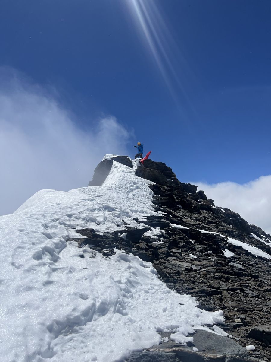 Өдрийн 12 цаг 15 минут. Оргил! Дтд 7495 м!. Шуургатай!. Өөрийгөө чамгүй сайн дайчилж байж оргилд гарлаа. Сэтгэл хангалуун. “Оргил бол уулчин хүний зорилгодоо хүрэх замын тал нь юм. Уулын оргил бэлдээ” гэж хамт 7945м өндөртэй оргил дээр зогсох агшинг ухаалаг утасныхаа дүрс бичлэгийн санамжид зориулан хүүрнэхийг бичин зогсож буй миний бүх бие чангарах мэдрэмж. Тиймээ одоо “газардах” хариуцлагатай ажил үлдэж байна.