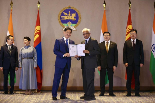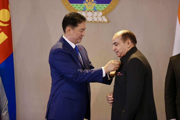 Хоёр орны хооронд дипломат харилцаа тогтоосны 70 жилийн ойг тохиолдуулан харилцаа, хамтын ажиллагааг өргөжүүлэн хөгжүүлэхэд үнэтэй хувь нэмэр оруулсан энэтхэг иргэдийг төрийн одон, медалиар шагналаа.
