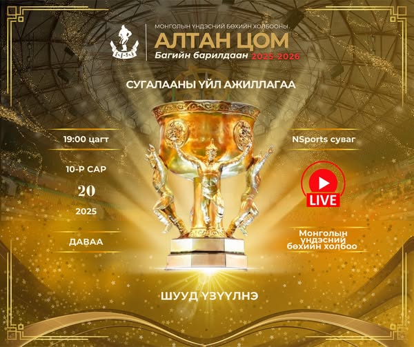 Монголын Үндэсний бөхийн холбооны “Алтан цом 2025” барилдаанд Үндэсний шилдэг найман компанийн баг өрсөлдөнө. Баг тус бүр найман гишүүнтэй байх бөгөөд гурван гишүүнийг сонгож, үлдсэн таван бөхийг сугалаагаар тодруулах юм.