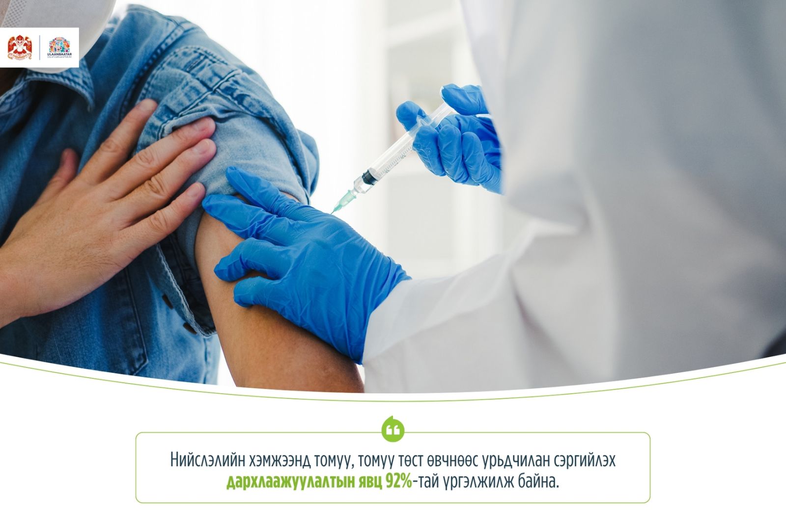 Нийслэлийн хэмжээнд томуу, томуу төст өвчнөөс урьдчилан сэргийлэх дархлаажуулалтад нийт 136 мянга гаруй иргэнийг хамруулахаар төлөвлөсөн. Өнөөдрийн байдлаар 124.947 иргэн хамрагдаж, дархлаажуулалтын явц 92 хувьтай үргэлжилж байна.
