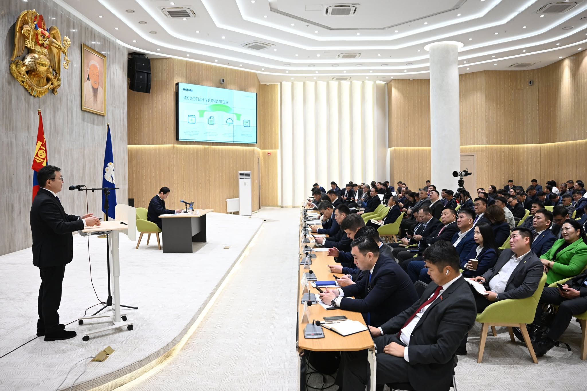 Нийслэлийн удирдах ажилтнуудын шуурхай зөвлөгөөн өнөөдөр болж, өмнөх шуурхай зөвлөгөөний биелэлт, тархмал эрчим хүчний дэд бүтцийн чиглэлээр хэрэгжүүлж буй төсөл, арга хэмжээ, “Хотула” аппликейшний хэрэглээний талаар хэлэлцэв. Өмнөх шуурхай зөвлөгөөнөөр 24 үүрэг даалгавар өгсөн бөгөөд хэрэгжилт 80.3 хувьтай байгааг НЗДТГ-ын Хяналт-Шинжилгээ, үнэлгээний газрын дарга Б.Мөнхбаяр танилцуулав.