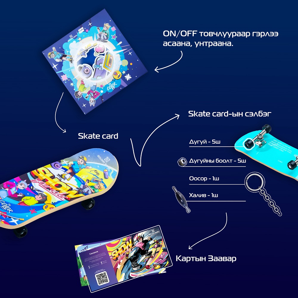 Хүүхэд багачууд, оюутан сурагчид аа, Skate card-аар өөрийн өнгө төрхийг илэрхийлж, санхүүгийн боловсролд эртнээс суралцъя.