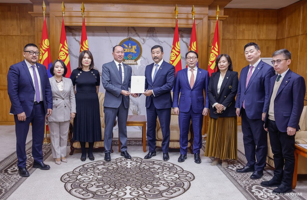 Улсын Их Хурлын гишүүн М.Бадамсүрэн нарын 33 гишүүн өнөөдөр (2025.11.14) Монгол Улсын Их Хурлын Чуулганы Хуралдааны Дэгийн тухай хуульд нэмэлт, өөрчлөлт оруулах тухай хуулийн төслийг Улсын Их Хурлын дэд дарга Ж.Бат-Эрдэнэд өргөн барилаа.