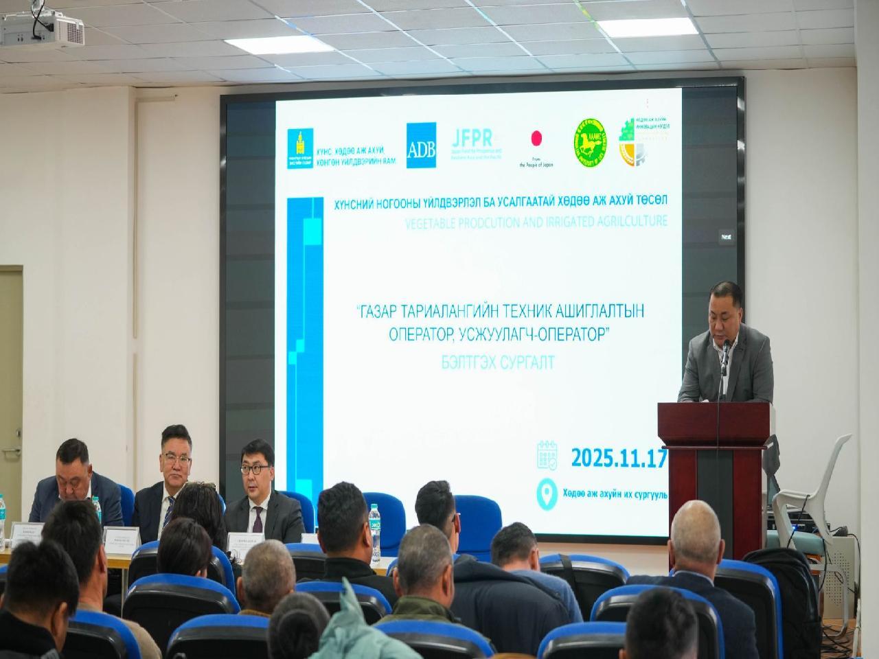Азийн хөгжлийн банк, Япон сангийн санхүүжилтээр хэрэгжиж буй уг төсөл хуучирч муудан үр ашиггүй болсон услалтын системийг сэргэхээс гадна тэдгээрийг үр ашигтай ашиглах хүний нөөцийг бэлтгэх газар тариалангийн техник ашиглалт оператор, усжуулагч-операторын богино хугацааны сургалтын хөтөлбөрийг Хөдөө аж ахуйн их сургууль дээр эхлүүллээ.
