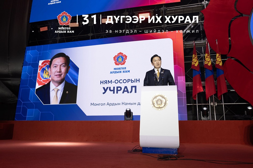 Монгол Ардын намын 31 дүгээр Их хурлын эхний өдөр намын даргаар УИХ-ын гишүүн, Тэргүүн шадар сайд бөгөөд Эдийн засаг, хөгжлийн сайд Н.Учралыг хуралд оролцсон нийт төлөөлөгчийн 94.95 хувийн саналаар сонгов.