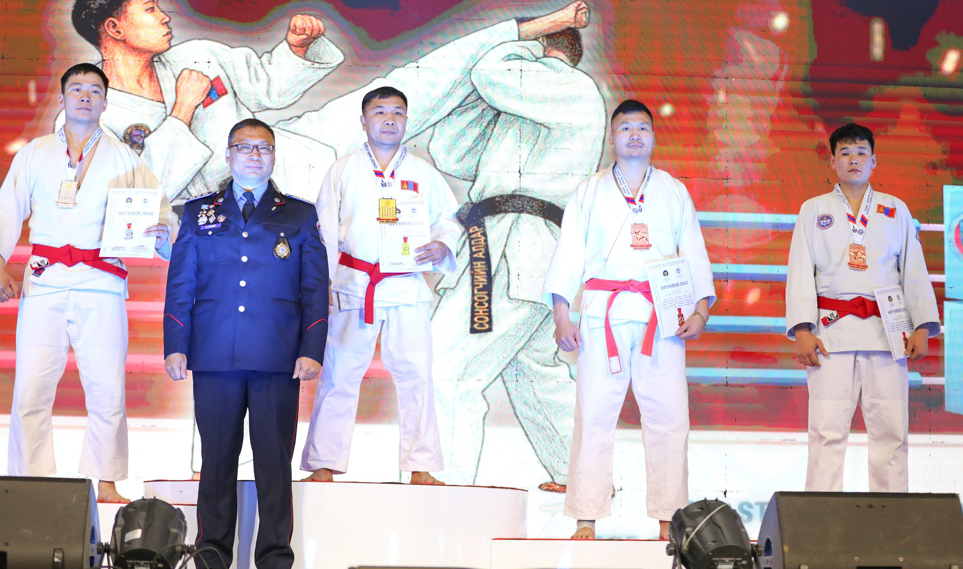 Эрэгтэй 85 кг-ын жинд хоёрдугаар байрт Тусгай ажиллагааны газрын бүлгийн офицер, дэслэгч Б.Маргад-Эрдэнэ нар тус тус шалгарснаар Шүүхийн шийдвэр гүйцэтгэх байгууллагаас тэмцээний эхний өдөр нийт 4 алт, 2 мөнгө, 1 хүрэл медаль хүртжээ.