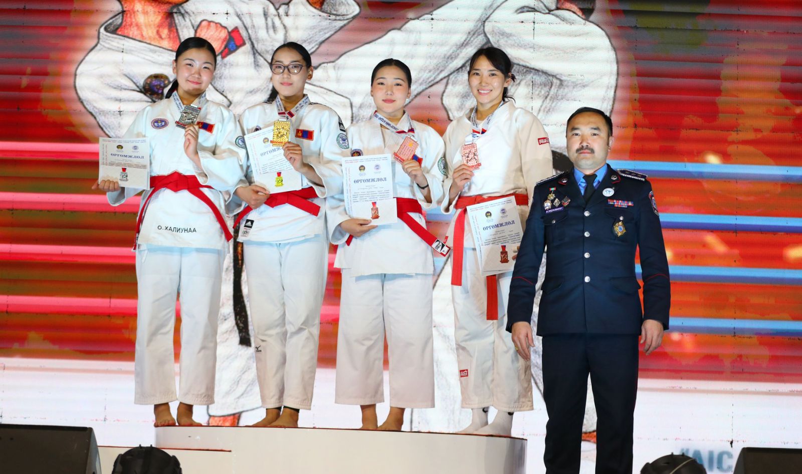 Тус тэмцээнд Шүүхийн шийдвэр гүйцэтгэх байгууллагаас 15 албан хаагч амжилттай оролцож байна.Тэмцээний “Өөрийгөө хамгаалах төрөл”-ийн эмэгтэй 55 кг-ын жинд хоёрдугаар байрт 415 дугаар нээлттэй, хаалттай хорих ангийн хамгаалалтын ажилтан, дэд ахлагч Б.Нэргүй;
