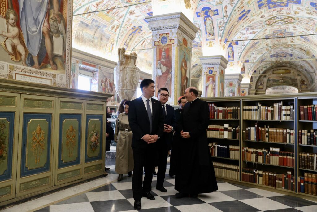 Монгол Улсын Ерөнхийлөгч Ухнаагийн Хүрэлсүх Гэгээн Ширээт Улсын төрийн тэргүүн Пап Арвандөрөвдүгээр Леогийн урилгаар тус улсад хийж буй төрийн айлчлалын үеэр Ватиканы Апостолын архив, номын санд зочиллоо.