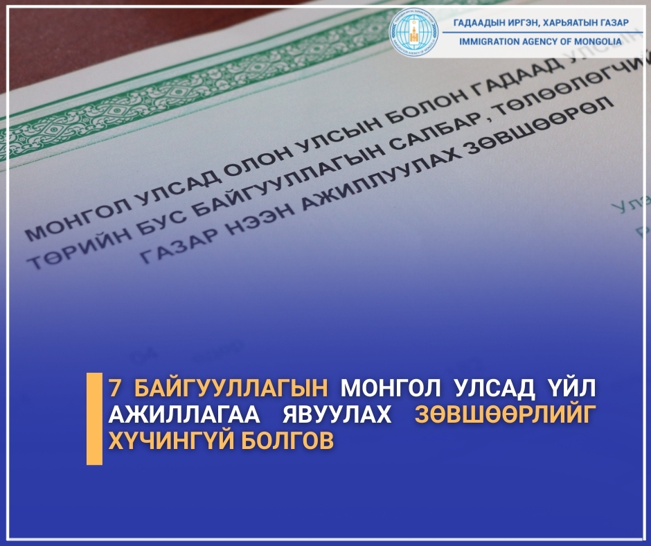 Энэ хүрээнд “Олон улсын болон гадаад улсын төрийн бус байгууллагын салбар, төлөөлөгчийн газарт Монгол Улсад үйл ажиллагаа явуулах зөвшөөрөл олгох, сунгах, хүчингүй болгох, үйл ажиллагаанд нь хяналт тавих журам”-ын дагуу дараах 7 байгууллагад олгосон Монгол Улсад үйл ажиллагаа явуулах зөвшөөрлийг хүчингүй болгов.