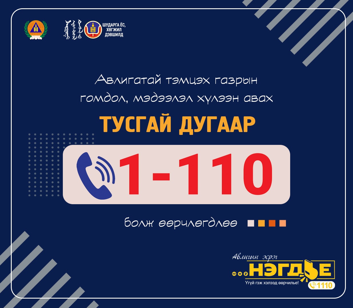 Авлигатай тэмцэх газрын ашиглаж байгаа 110 тусгай дугаарыг 2026 оны гуравдугаар сарын 1-нийг хүртэл давхар ажиллуулах бөгөөд дээрх хугацаанаас хойш 110 дугаар хаагдаж, 1-110 дугаар ердийн горимоор ажиллах юм. Тус 1-110 дугаар нь техник технологийн шинэчлэлийг ашигласан, олон улсын жишигт нийцсэн, авлигын талаарх мэдээллийг аюулгүй, шуурхай, нууцлал хангаж өгөх, хүлээн авах боломжийг бүрэн бүрдүүлсэн гэдгээрээ онцлогтой.