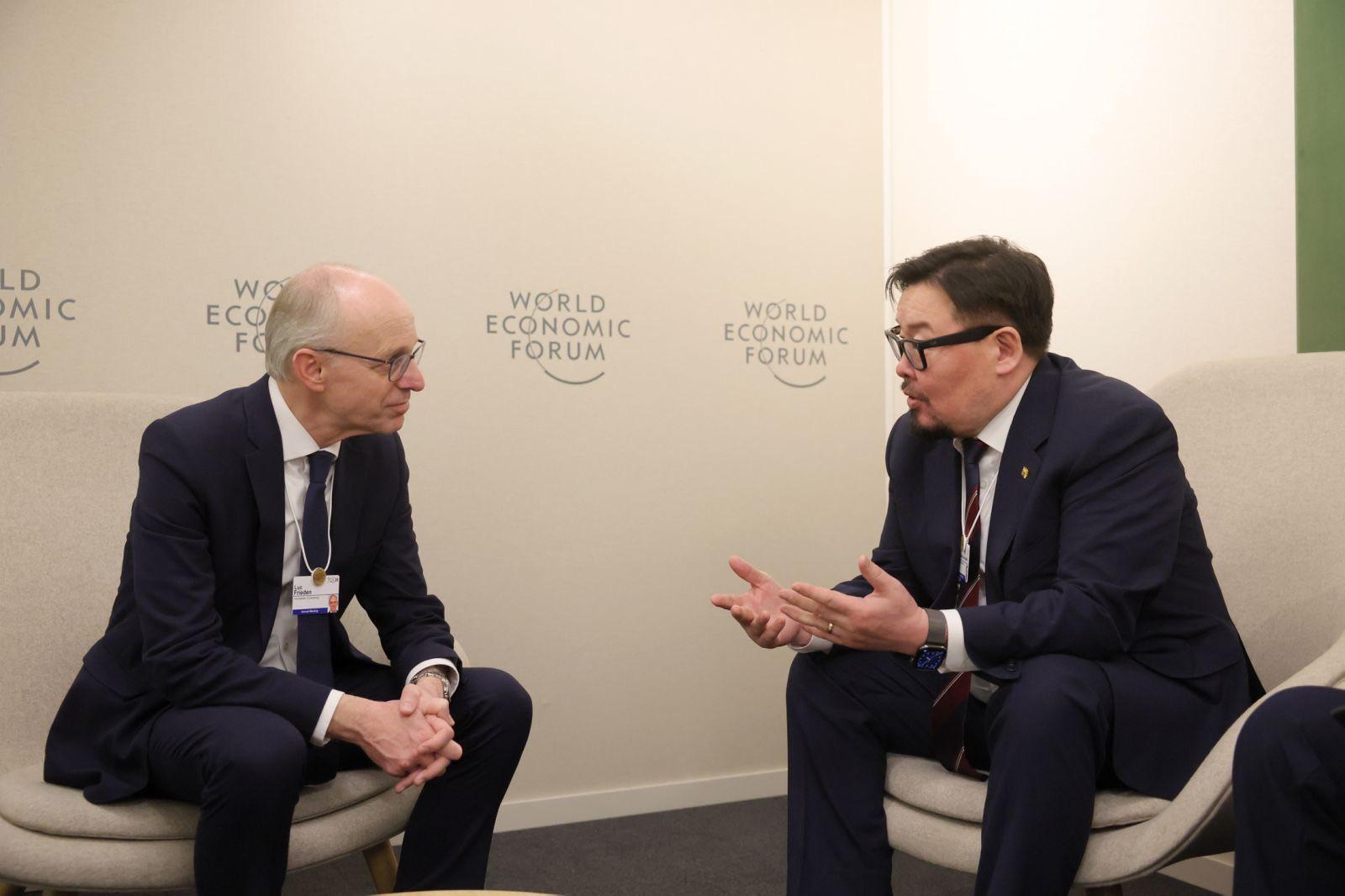 Швейцарын Давос хотноо болж буй Дэлхийн эдийн засгийн 56 дахь удаагийн чуулга уулзалтад оролцож буй Монгол Улсын Ерөнхий сайд Г.Занданшатар Швейцарын Холбооны Улсын 2026 оны Ерөнхийлөгч бөгөөд Эдийн засаг, боловсрол, судалгааны сайд Ги Пармелантай нэгдүгээр сарын 21-ний өдөр уулзав.