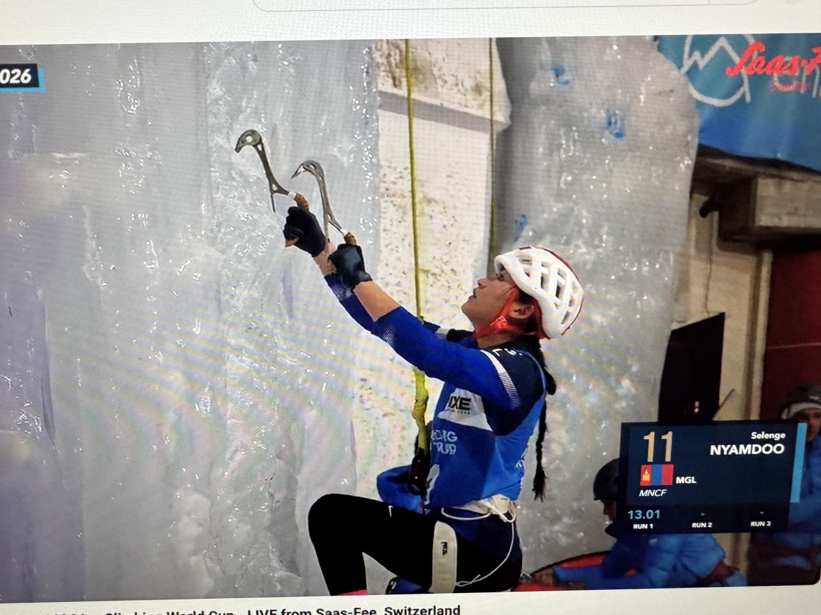 Швейцарийн Холбооны Улсын Саас-Фээ хотод зохиогдож байгаа Олон Улсын Уулчдын Холбоо (UIAA)-ны Мөсөнд авиралтын Дэлхийн цомын аварга шалгаруулах тэмцээний "Хурд"-ны төрөлд Говь-Алтай аймгийн Тонхил сум дахь Уулын спортын ууган мастер Я.Жанцангийн нэрэмжит "Сутайн бор" клубын "Олимп" Спорт авиралтын төвийн тамирчин, МУБИС-ийн БТС-ийн Спорт, аялал жуулчлалын ангийн оюутан, ОУХМ Н.Сэлэнгэ түрүүлж, аваргын алтан медаль хүртлээ.