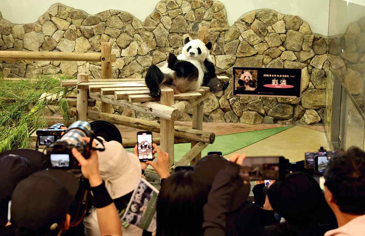 Сяо Сяо, Лэй Лэй ихэр баавгайг харах гэж хүмүүс гурваас илүү цаг дугаарлан зогсжээ. Тэд Японд 2021 онд төрсөн хэдий ч Хятадын өмч юм. Хятад улс Бүгд найрамдах улсаа тунхагласнаас хойш дэлхийн бусад орнуудад панда баавгайнуудыг сайн санааны үүднээс шилжүүлэн өгдөг ба хүлээн авагч орнууд жилд хос баавгайн түрээсэнд нэг сая ам.доллар төлдөг байна.