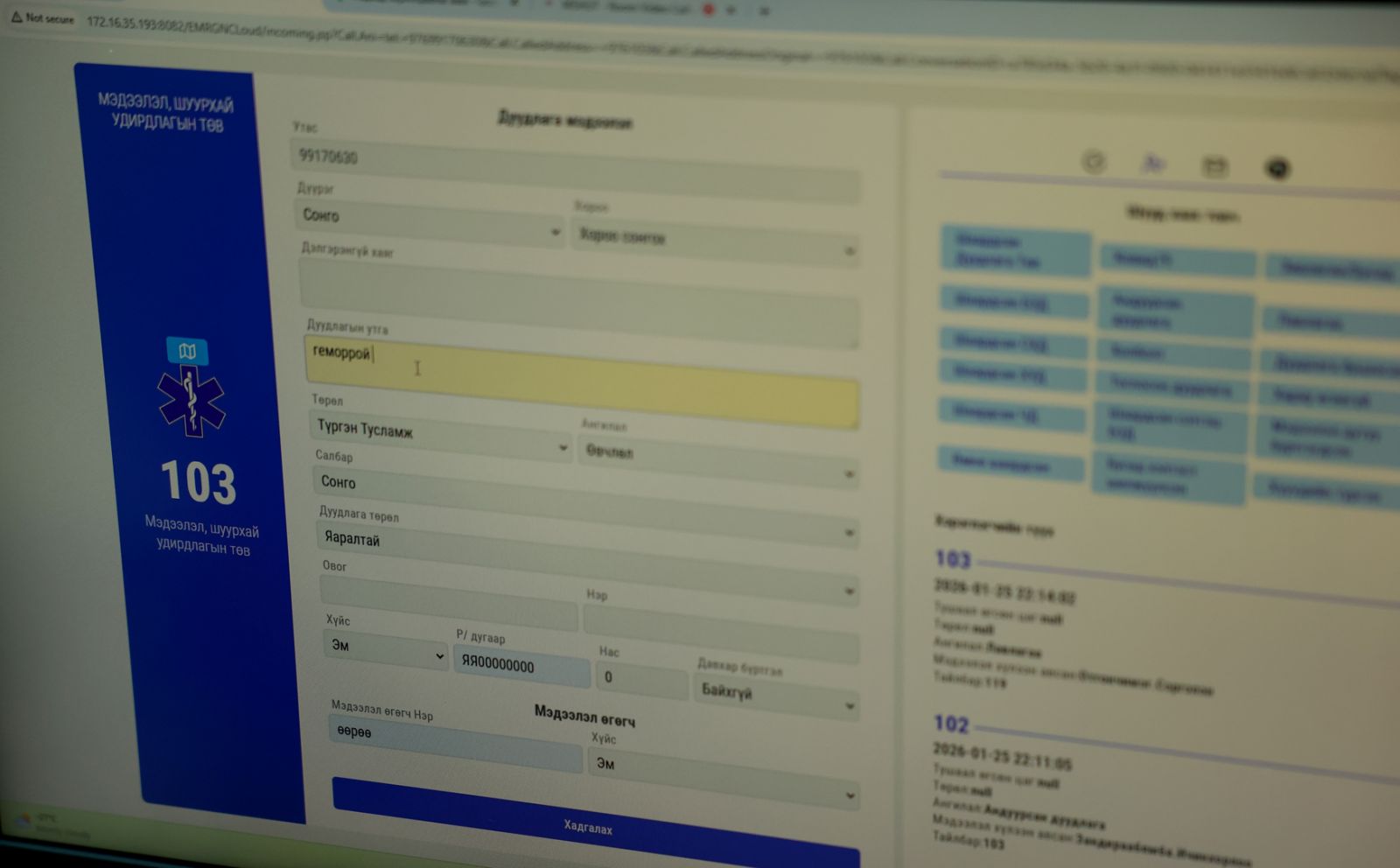 Мэдээлэл, шуурхай удирдлагын төвийн дарга, цагдаагийн хурандаа П.Энхбаяр “Манай төв 24 цагт 7500-аас дээш дуудлага хүлээж авдаг. Хоногт дунджаар онцгой байдлын 105 дугаарт 500, цагдаагийн 102 дугаарт 4000, түргэн тусламжийн 103 дугаарт 3000 гаруй дуудлагыг хүлээн авч хариуцсан газарт нь шилжүүлэхээс гадна шаардлагатай зөвлөгөө, мэдээллийг хүргэж ажиллаж байна. 103 дугаарын дуудлагыг хүлээж авч буй операторууд бүгд эмч мэргэжилтэй албан хаагчид бий” гэсэн тайлбарыг өглөө. Харин 103 дугаарын дуудлагыг Нийслэлийн түргэн тусламжийн төвд шилжүүлэх боломжтой эсэхийг тус төвийн дарга С.Ариунболд тодруулахад хууль эрх зүйн хүрээнд боломжгүй байна.