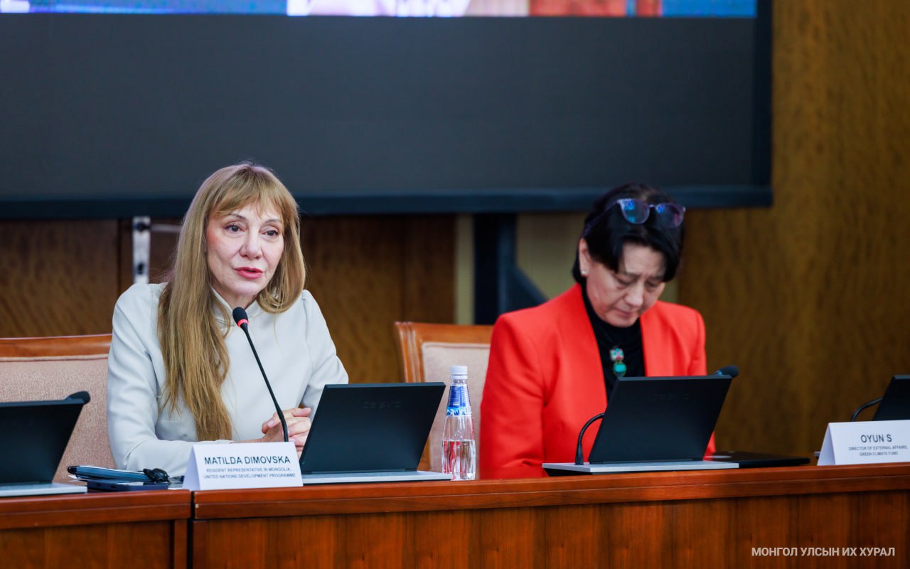Хэлэлцүүлгийг Улсын Их Хуралтай хамтран зохион байгуулж байгаа НҮБ-ын Хөгжлийн хөтөлбөрийн Монгол дахь Суурин төлөөлөгч Матильда Димовска дараа нь мэндчилгээ дэвшүүлэв. Тэрбээр Улсын Их Хурлаас батлан гаргасан сэргээгдэх эрчим хүчний эх үүсвэрүүдийг хөгжүүлэхтэй холбоотой тогтоол бол түүхэн шийдвэр гэдгийг онцолж, эрчим хүчний шинэчлэлийн төвд айл өрх, олон нийтийн тавьж, цэвэр эрчим хүчийг илүү хүртээмжтэй болгох бодлого баримталж буй нь чухал ач холбогдолтой гэлээ. Энэ талаар НҮБ-ын Хөгжлийн хөтөлбөрөөс Монгол Улстай нягт хамтран ажиллаж ирснийг тэрбээр дурдаад, дүн шинжилгээ хийх, бодлого боловсруулах, хөрөнгө оруулалтын төлөвлөлт хийх, агаарын бохирдол, эрчим хүчний ядуурал, уур амьсгалын эрсдлийг цогц байдлаар туршиж үзэх зэрэгт Засгийн газарт туслалцаа үзүүлэн ажиллаж байгаагаа товч танилцууллаа. Дулаан эрчим хүчний тогтвортой хөгжлийн зураглалыг 2025 онд боловсруулж, үүнд цэвэр буюу ногоон технологи ашиглах шинэчлэлт өөрчлөлтийн боломжийг тусгасан хэмээн хатагтай Матильда Димовска өгүүлж, Улаанбаатар хотын Засаг даргын Тамгын газар болон Чингэлтэй дүүрэгтэй хамтран хийж буй гэр хорооллын айл өрхүүдэд зориулсан сэргээгдэх эрчим хүчний халаалт, дулаалгын шийдлийг турших төслийн талаар дурдав. Энэ төсөлд одоогоор 150 өрх хамрагдаж байгаа бөгөөд 2028 он гэхэд нийт 600 айл өрхийг хамруулах ажээ.