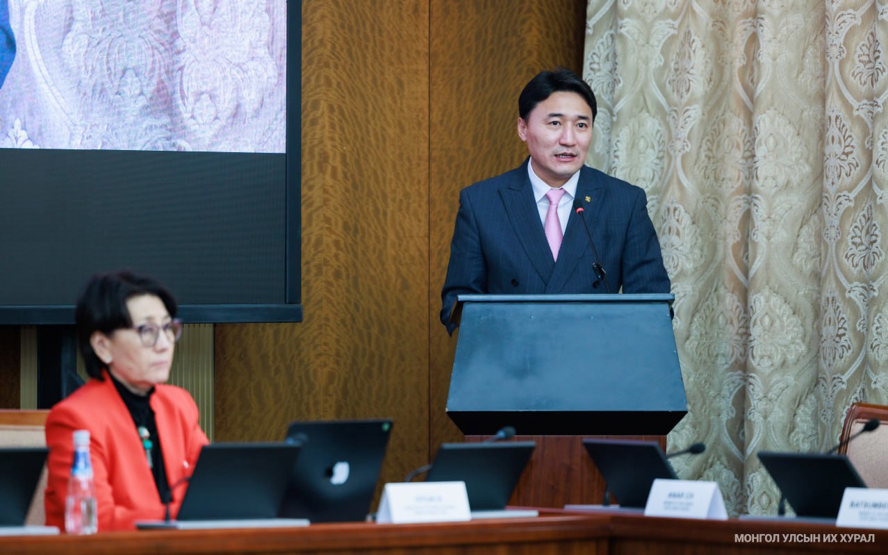 Сүүлийн 10 жилд дэлхий даяар ногоон санхүүжилтийн хэмжээ 40 дахин өссөн бөгөөд цаашид жилд дунджаар 21.0 хувийн тогтмол өсөлттэй байх аж. Улмаар санхүүжилт бүхэлдээ ногоон болно гэсэн үгээр Улсын Их Хурлын дарга илтгэлээ эхлүүлсэн юм. Дэлхийн хөгжлийн чиг хандлага ногоон санхүүжилт рүү чиглэж, манай эдийн засгийн гол түншүүд, хөрш орнууд ногоон шилжилтүүдээ төлөвлөн хэрэгжүүлж эхэлснийг тэрбээр танилцуулж, иймд ногоон шилжилтэд бэлэн байх энэхүү шаардлагад нийцүүлэн “Монгол Улсыг 2030 он хүртэл хөгжүүлэх таван жилийн үндсэн чиглэл”-д ногоон эдийн засгийг дэмжиж, ногоон төслүүдийг хэрэгжүүлэх, сэргээгдэх эрчим хүчний тархмал эх үүсвэрийг хөгжүүлж, хараат байдлыг бууруулах, үндэсний эрчим хүчний аюулгүй байдлыг бэхжүүлэх зорилтууд тусгагдаад байгааг дурдав. Үндсэн чиглэлийн хэрэгжилтийг бодитоор хэмжих тодорхой индикаторуудыг тавьж, олон улсын индексийн үзүүлэлтүүдтэйгээ уялдуулан дүгнэж байгааг Улсын Их Хурлын дарга мөн мэдээлж, таван жилийн дараа гарах үр дүн, 30 тэрбумаас дээш санхүүжилттэй хөрөнгө оруулалтын төслүүд, үүний дотор ногоон эрчим хүчний төслүүдийн талаар тодотгон ярилаа.