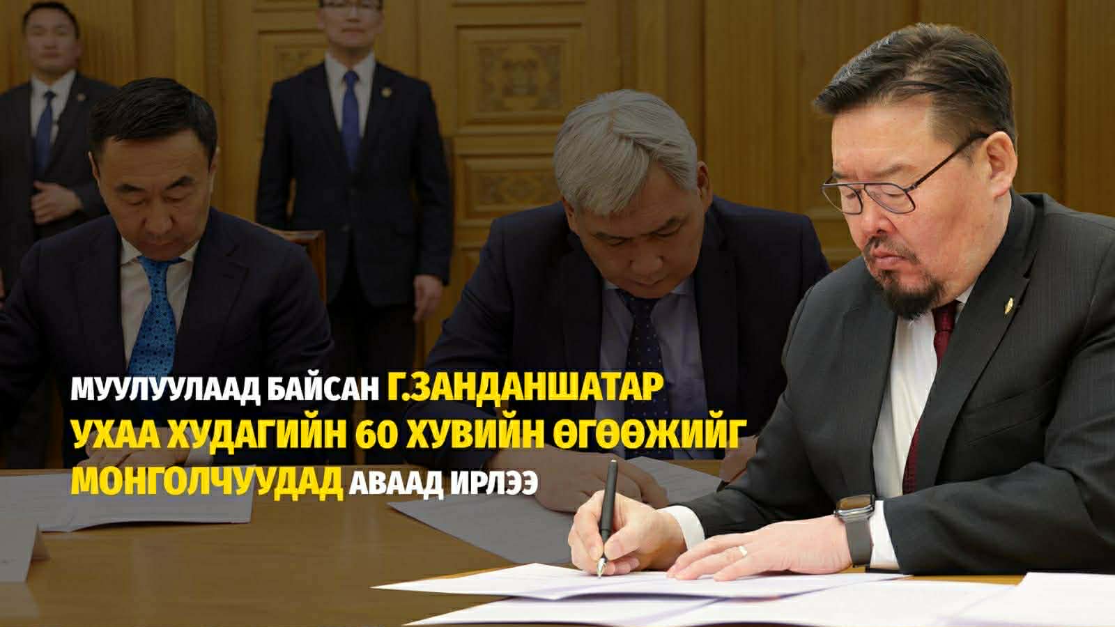 Г.Занданшатар УИХ-ын дарга байхдаа 2019 онд Үндсэн хуульд оруулсан, нэмэлт, өөрчлөлтөөр “Баялгийн өгөөжийн 60-аас доогүй хувь нь ард түмэнд ногддог байх” зарчмыг суулгаж өгсөн. Үүнээс хойш 7 жил өнгөрөхөд Үндсэн хуулийн энэ заалт амилаагүй л байв. Харин мань Г.Занданшатар Ерөнхий сайдын хувиар сувинер шиг байсан энэ заалтыг бодитоор амиууллаа. Чамлахаар чанга атга гэдэг үгтэй. Ашиг орлогыг нь хэдхэн хүн хүртдэг байсан Ухаа худагийн 60 хувийн өгөөж монголчуудад ирнэ гэдэг яаж ч бодсон эерэг үр дүн дагуулна.