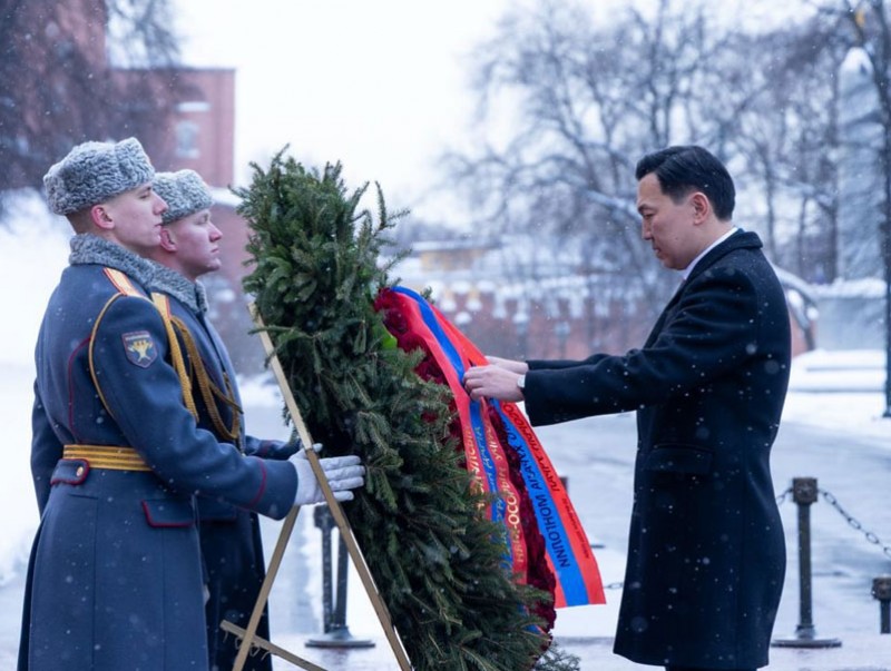 Улсын Их Хурлын дарга Н.Учрал тэргүүтэй ОХУ-д албан ёсны айлчлал хийж буй Монголын парламентын төлөөлөгчид өчигдөр Москва хотын Александрын цэцэрлэгт хүрээлэн дэх “Нэр үл мэдэгдэх цэргийн хөшөө”-нд цэцэг өргөлөө.