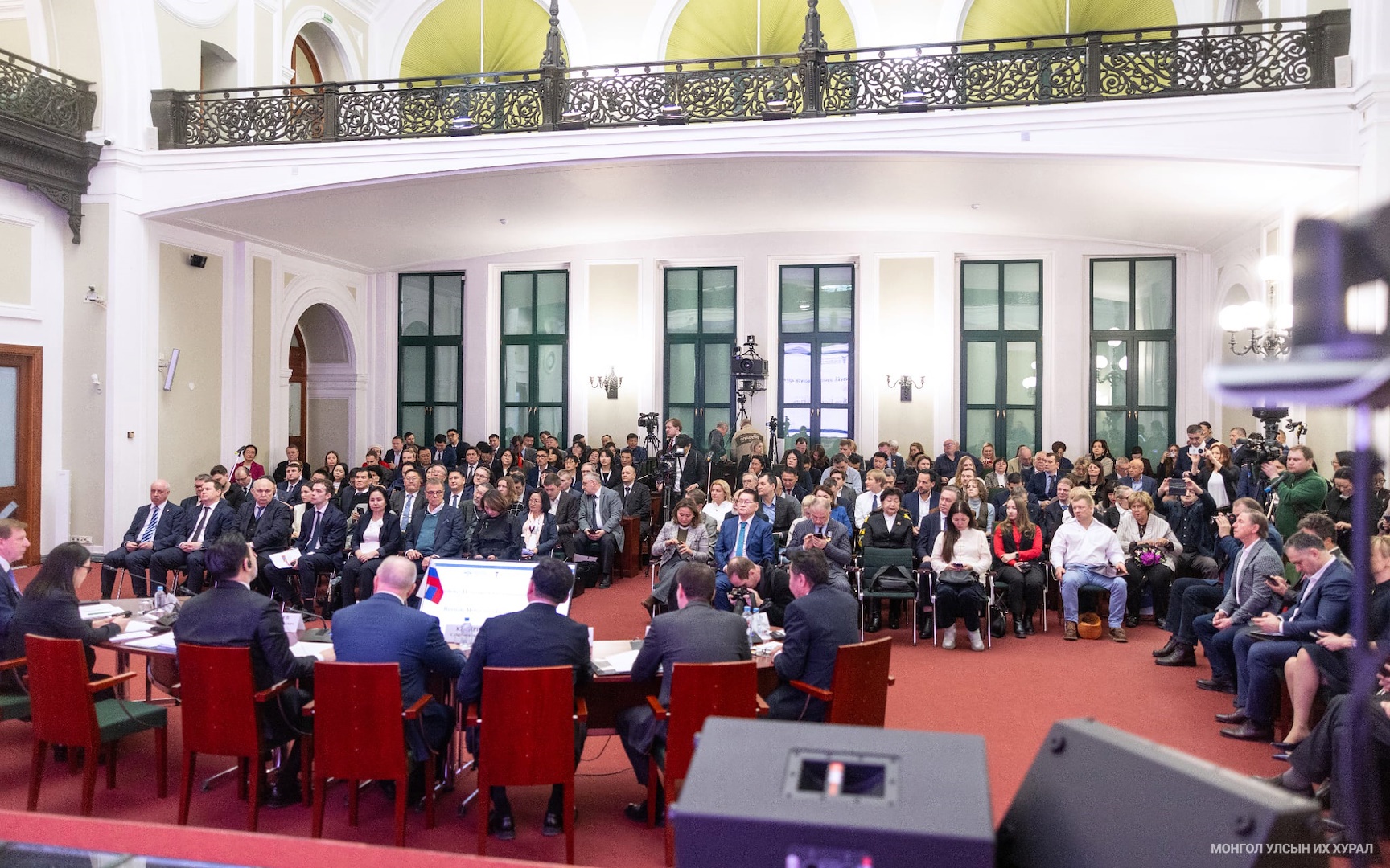 Монгол Улсын Их Хурлын дарга Н.Учралын Оросын Холбооны Улсад хийж буй албан ёсны айлчлалынхаа үеэр Москва хотноо болж буй “Монгол-Оросын бизнес форум”-д (2026.02.11) оролцлоо. Уг форумд Монголын талаас 50 гаруй аж ахуйн нэгжийн 70 орчим төлөөлөл оролцсон бол Оросын талаас 100 гаруй бизнесийн төлөөлөл цуглажээ.