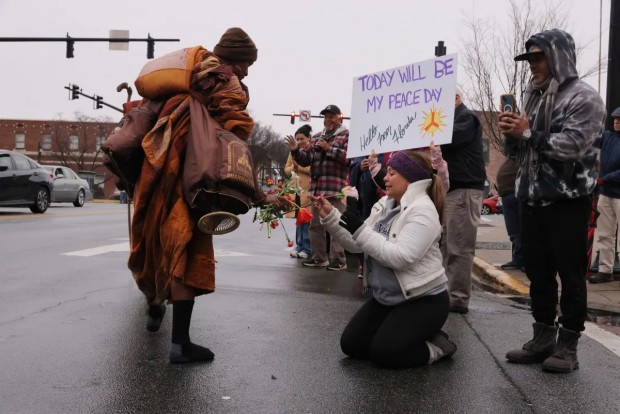 Бурхны шашны лам нар Энхийн төлөө Техасаас Вашингтон хүртэл нийт 110 хоногийн хугацаанд 3701 км зайг явганаар туулжээ. Тэд энэхүү аянаа Капитолийн ордны өмнө өндөрлөжээ.