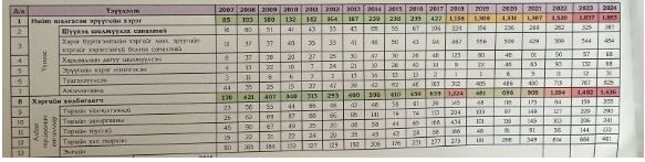 Тухайлбал, 2012 онд шүүхэд шилжүүлэх саналтай хэрэг 164 байсан бол 2024 онд 1863 болж өсчихөөд байна. Шийдвэрлэсэн байдлаараа 2012 онд 14 байсан бол 2024 онд 216 хэргийг шүүхээр шийдвэрлүүлжээ. Үүнийг дагаад шүүхээр шийдвэрлэгдсэн хэргийн холбогдогчийн тоо 2012 онд 38 хүн байсан бол 2024 онд 430 хүн болж өсчээ. Нөхөн төлүүлсэн хохирлын хэмжээ 3.1 тэрбум төгрөг байсан бол 2024 онд 240.9 тэрбум болсон байна. Ялгаа байгаа биз?