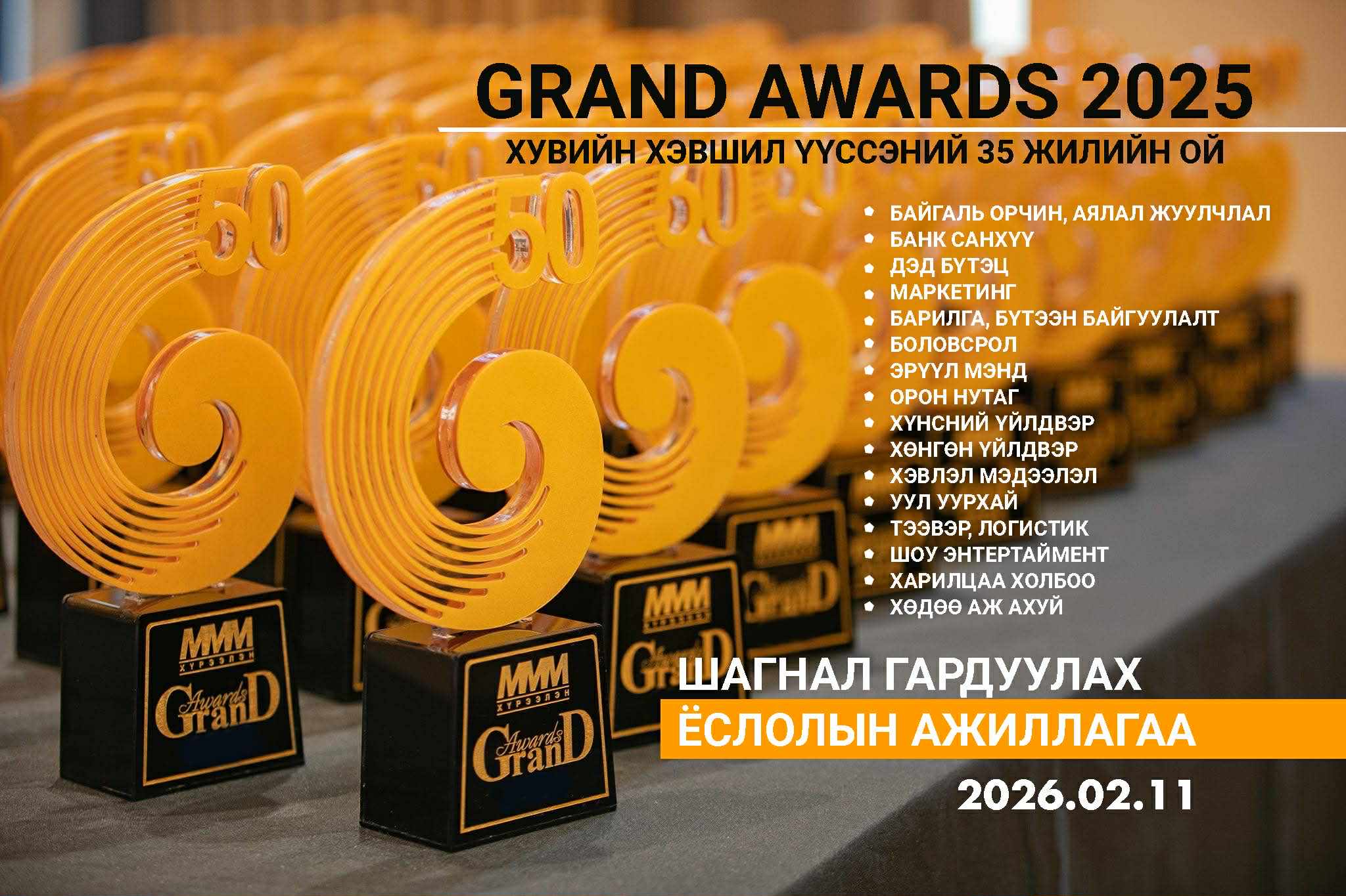 Монголын Маркетинг, Менежментийн хүрээлэн, Монголын сайтын холбооноос хамтран зохион байгуулдаг “Grand Awards” шагнал гардуулах ёслол 16 дахь жилдээ зохион байгуулагдаж, шилдгүүдээ тодрууллаа.
