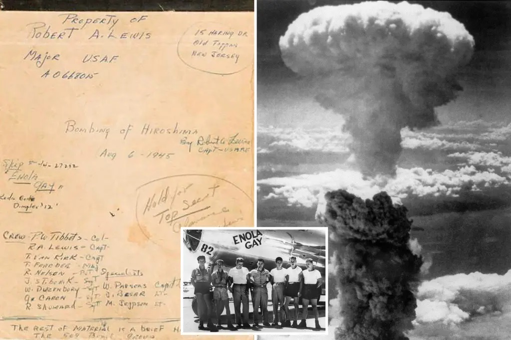 1945 оны наймдугаар сарын 6-нд Японы Хирошима хотод атомын бөмбөг хаясан B-29 бөмбөгдөгч онгоцны нисгэгч Роберт Льюисийн өдрийн тэмдэглэлийг Калифорни мужид дуудлага худалдаагаар худалдана.