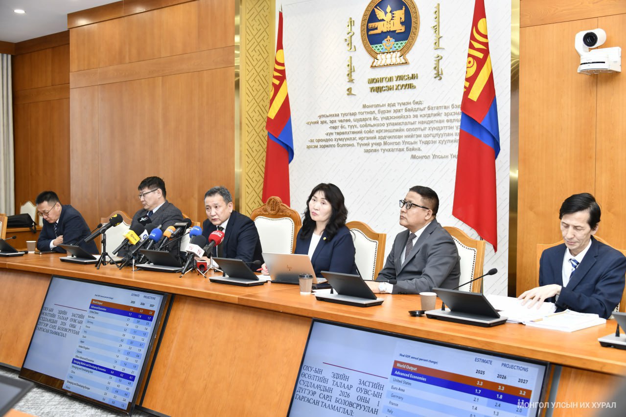 Төсвийн тогтвортой байдлын зөвлөлөөс өнөөдөр /2026.03.13/ “Монгол Улсын 2027–2029 оны дунд хугацааны төсвийн хүрээний мэдэгдэл боловсруулахад ашиглах макро эдийн засгийн үндсэн үзүүлэлт, төлөв байдлын таамаглалын тайлан"-гийн үр дүнгийн талаар сэтгүүлчдэд мэдээлэл хийлээ.