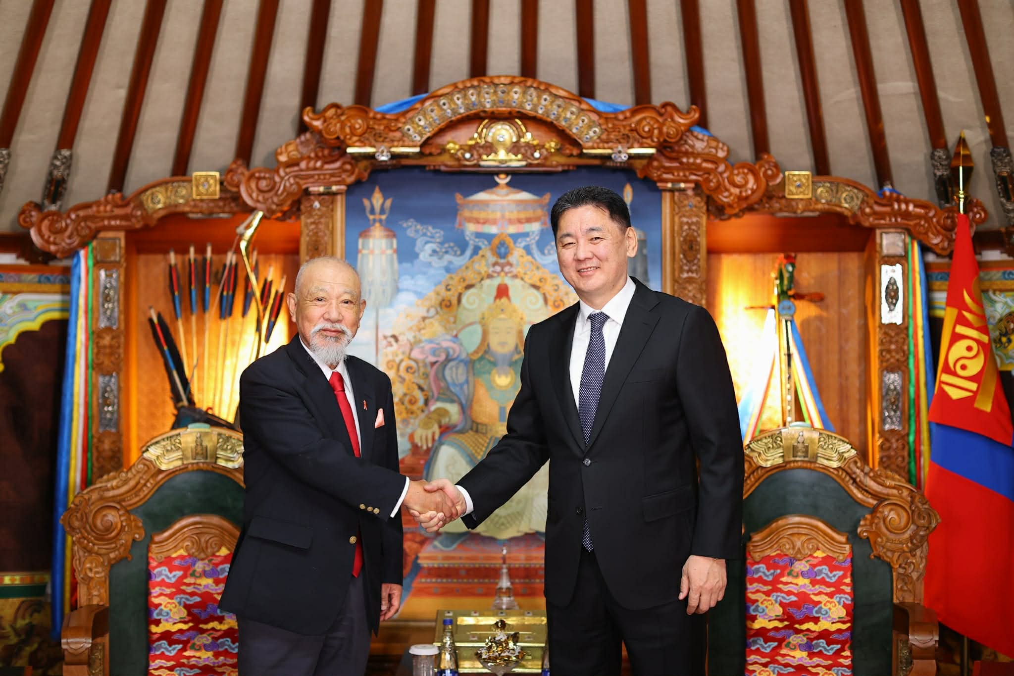 Монгол Улсын Ерөнхийлөгч Ухнаагийн Хүрэлсүх Японы “Ниппон сан”-гийн хүндэт тэргүүн Сасакава Ёохэи-г хүлээн авч уулзлаа.