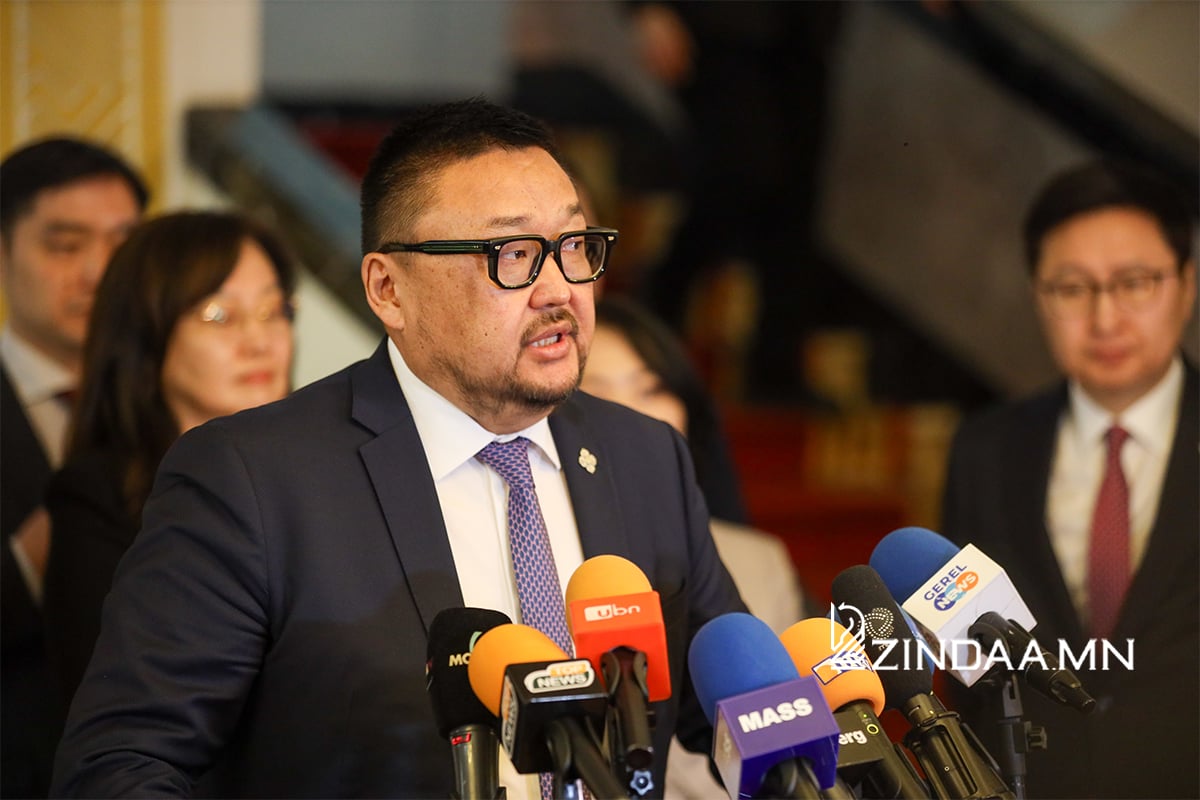 Сангийн сайд З.Мэндсайхан мэдээлэл өгч байна.