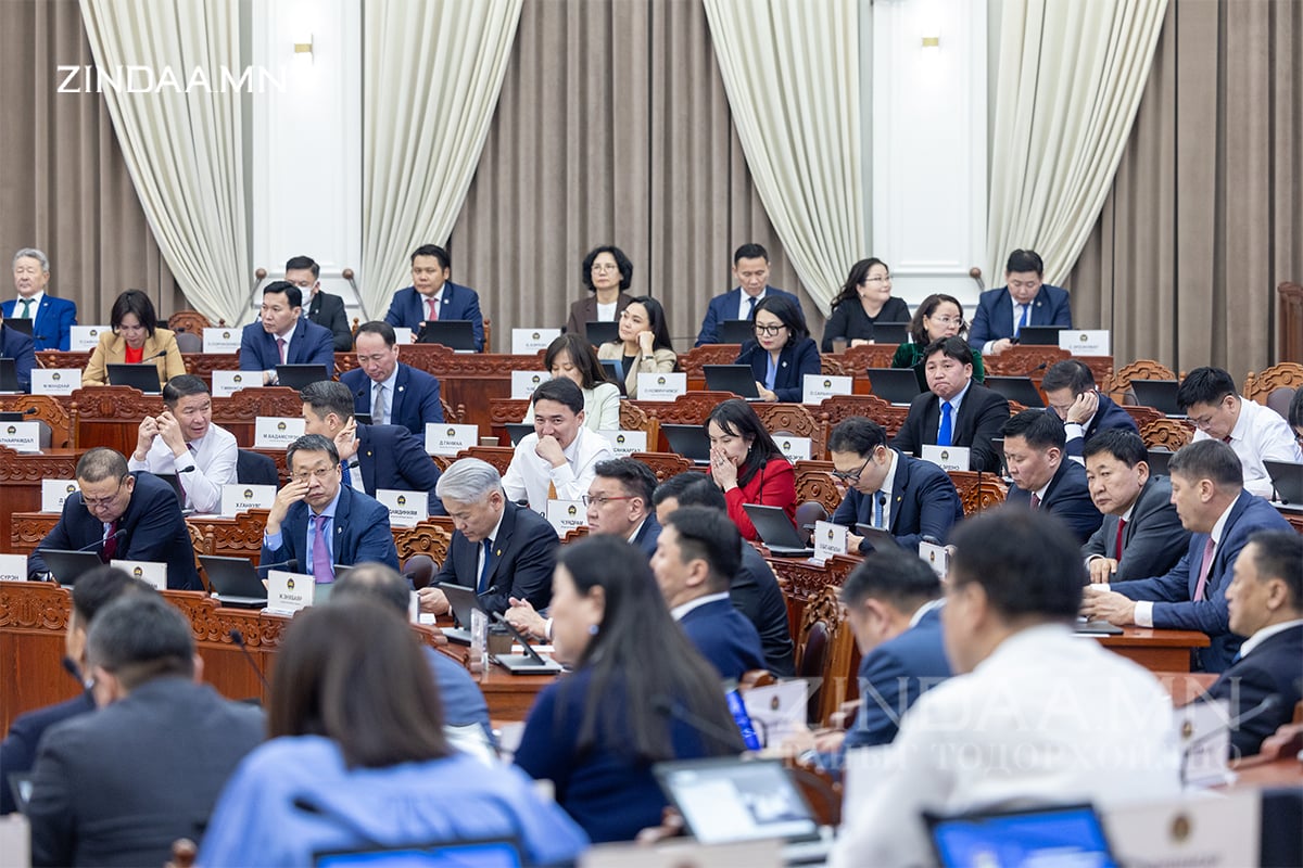 · Улсын Их Хурлын 2026 оны хаврын ээлжит чуулганаар хэлэлцэх асуудлын жагсаалтад ороогүй хууль, тогтоолын төслүүдийг чуулганаар хэлэлцүүлэх эсэх асуудал · Монгол Улсын Их Хурлын чуулганы хуралдааны дэгийн тухай хуульд нэмэлт, өөрчлөлт оруулах тухай хуулийн төсөл /Үндсэн хуулийн цэцийн 2025 оны 12 дугаар дүгнэлтийг хүлээн зөвшөөрсөнтэй холбогдуулан боловсруулсан, анхны хэлэлцүүлэг/ ·Байнгын хорооны тогтоолын төсөл /Ажлын хэсэг байгуулах тухай/ · Бусад |