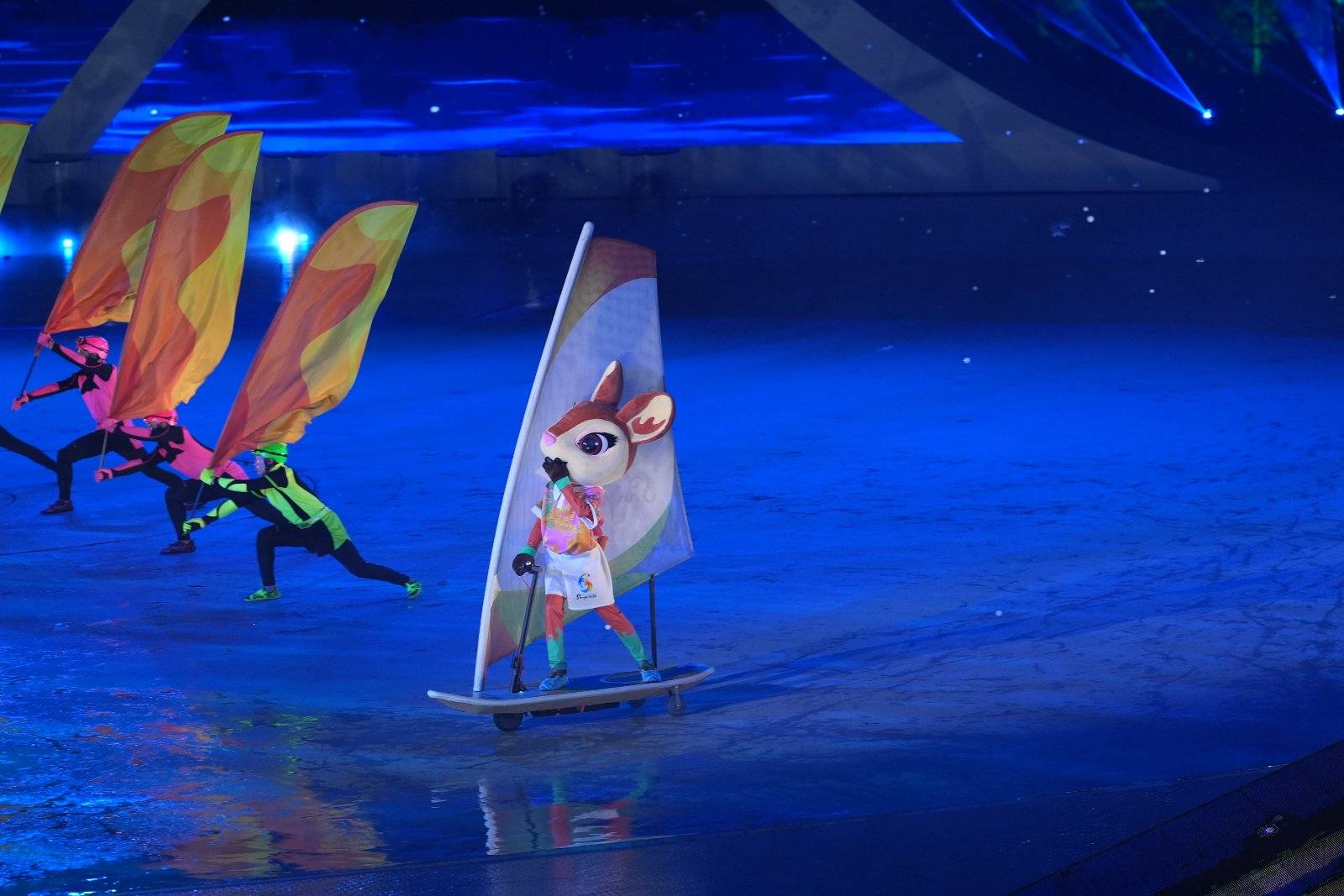 Бэлэг тэмдэгт дүр (Mascot) Бэлэг тэмдэгт дүрийн загвар нь Хайнань болон энэ арлын уугуул амьтан болох Элдийн буга (Eld’s deer)-ын салшгүй холбооноос санаа авч бүтээгджээ. Энэ амьтан нь “Хайнань арлын эльф” хэмээн алдаршсан, Хятадын нэгдүгээр зэрэглэлийн хамгаалалтад байдаг ховор амьтан юм.